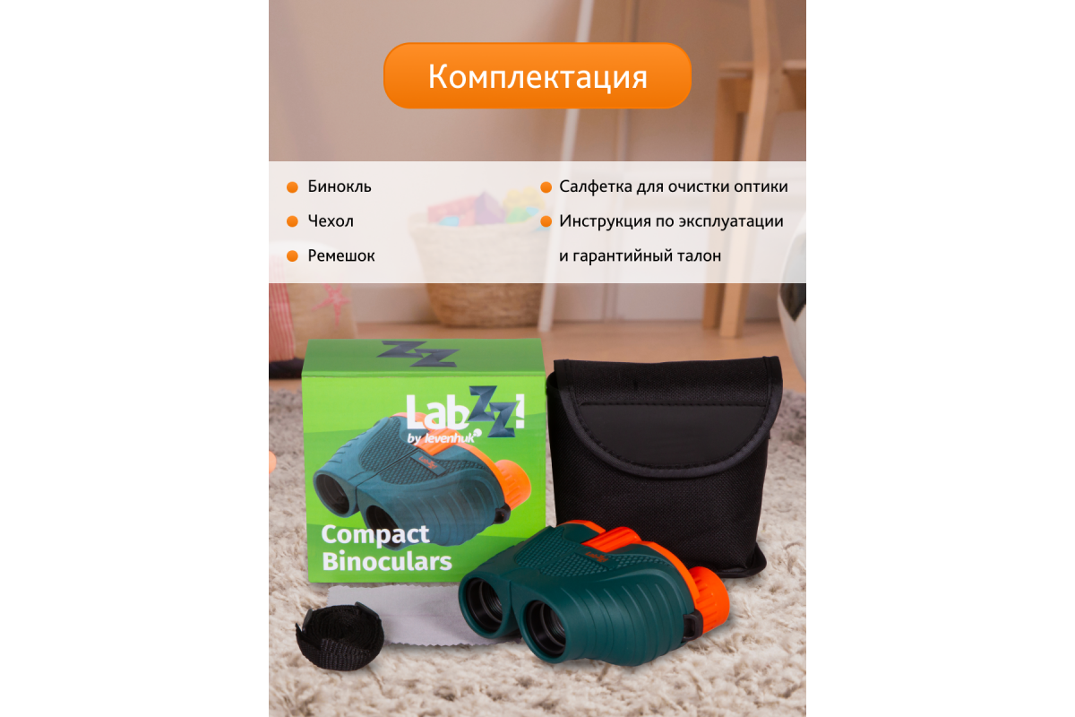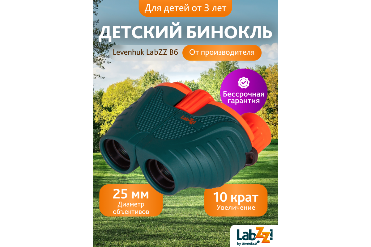 Levenhuk LabZZ B6 – облегченная модель бинокля, разработанная специально для детской руки. Такой прибор станет отличным помощником в изучении красот окружающего мира. Благодаря компактности легкого пластикового корпуса его можно без труда взять с собой на дачу, в лагерь или путешествие. Детям разных возрастов понравится гулять с биноклем по знакомым маршрутам, открывая для себя новые детали пейзажей и архитектуры. Прибор прекрасно подойдет для наблюдения за жизнью животных и птиц.