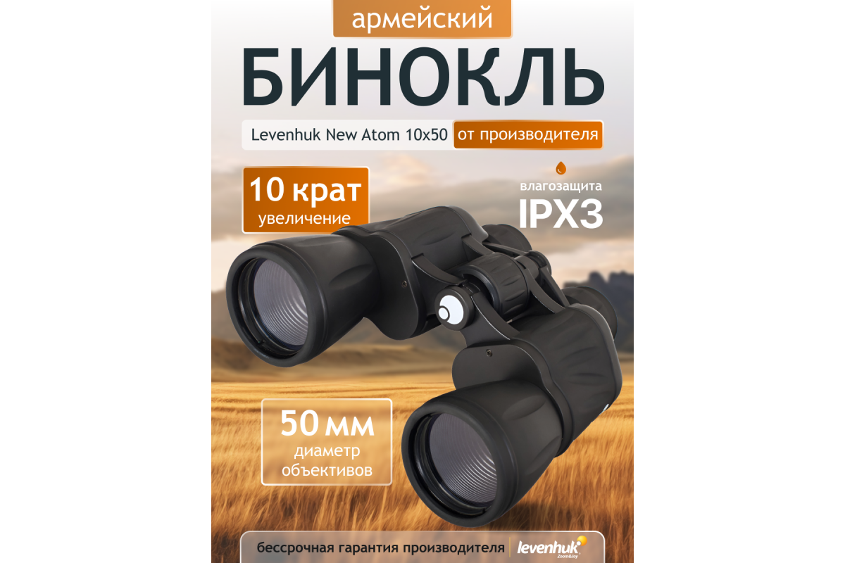 Полевой бинокль Levenhuk New Atom 10x50 благодаря увеличению 10 крат и светосильным объективам с диаметром 50 мм пригодится как рядовым пользователям, так и охотникам или лесникам. Призмы Порро и линзы из стекла марки BK-7 с полным просветлением пропускают свет с минимальными потерями, поэтому прибор прекрасно подойдет тем, кто проводит наблюдения в пасмурную погоду или в предрассветные часы. Что немаловажно, у модели хороший угол обзора – 7°, и ширина поля зрения на удалении 1 км равна 115 м. Это дает достаточную панораму для комфортных наблюдений красот природы.