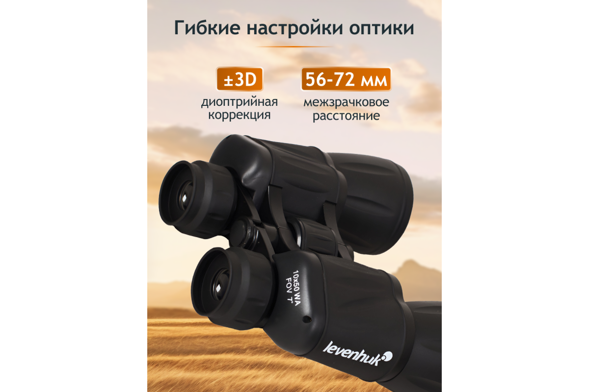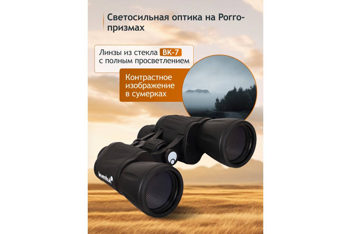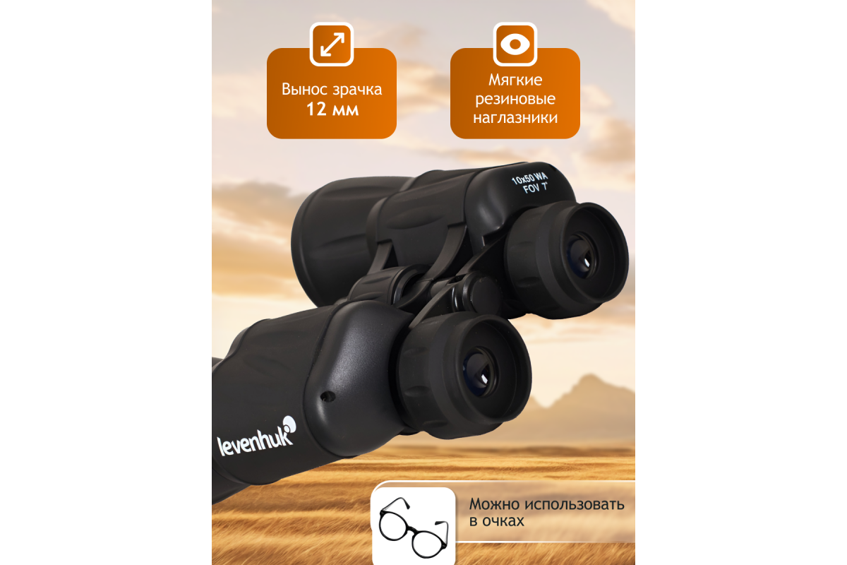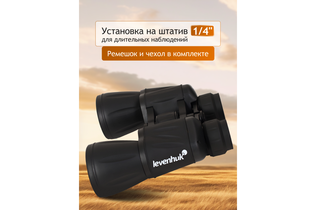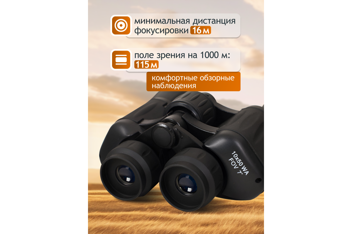 • Полевой бинокль на призмах Порро с апертурой 50 мм и кратностью 10x