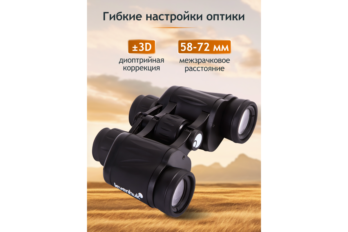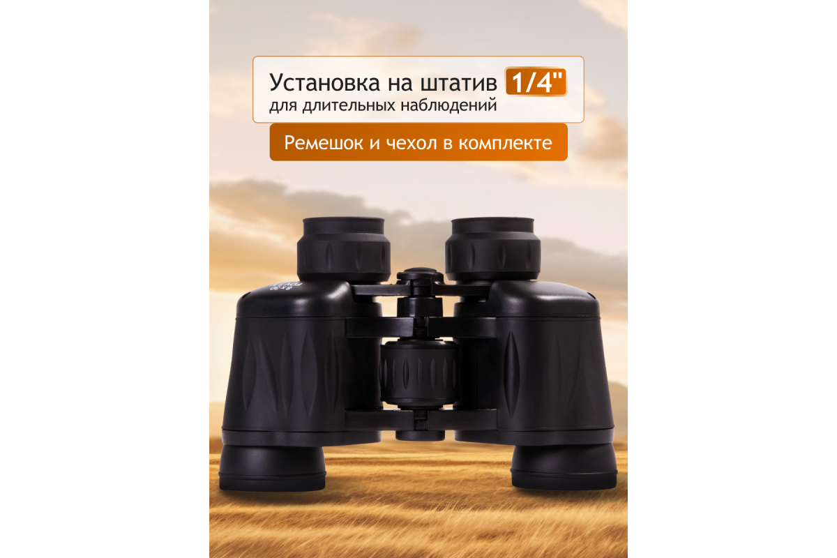 Традиционная вещь – подгонка межзрачкового расстояния – возможна в диапазоне 58–72 мм, есть диоптрийная коррекция ±3 D, что может пригодиться для наблюдений без очков. Для длительных стационарных наблюдений предусмотрена установка на штатив – с помощью адаптера, который приобретается отдельно.