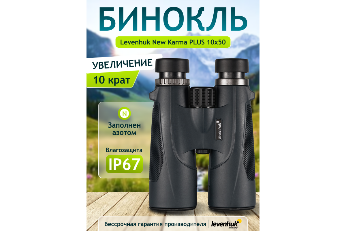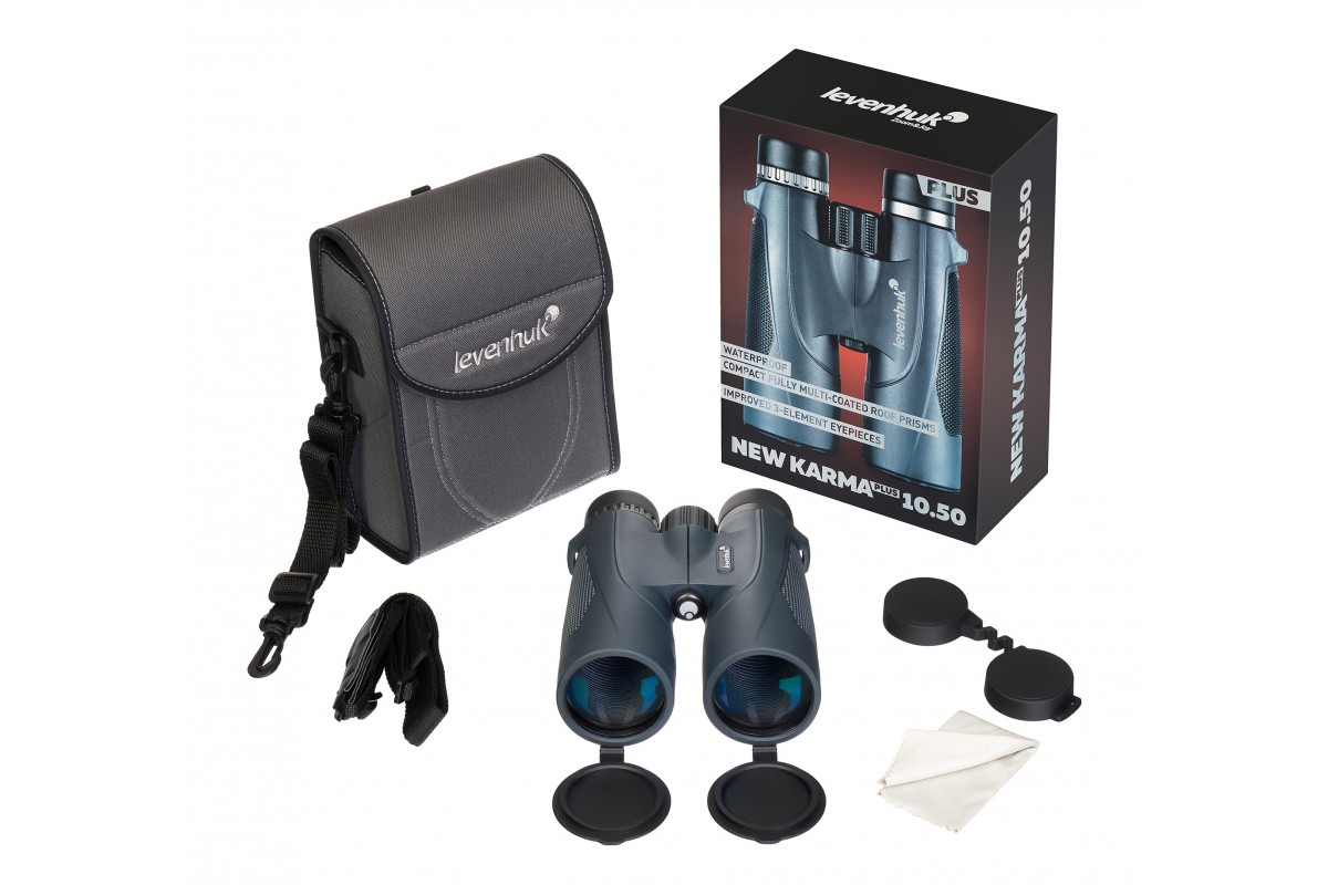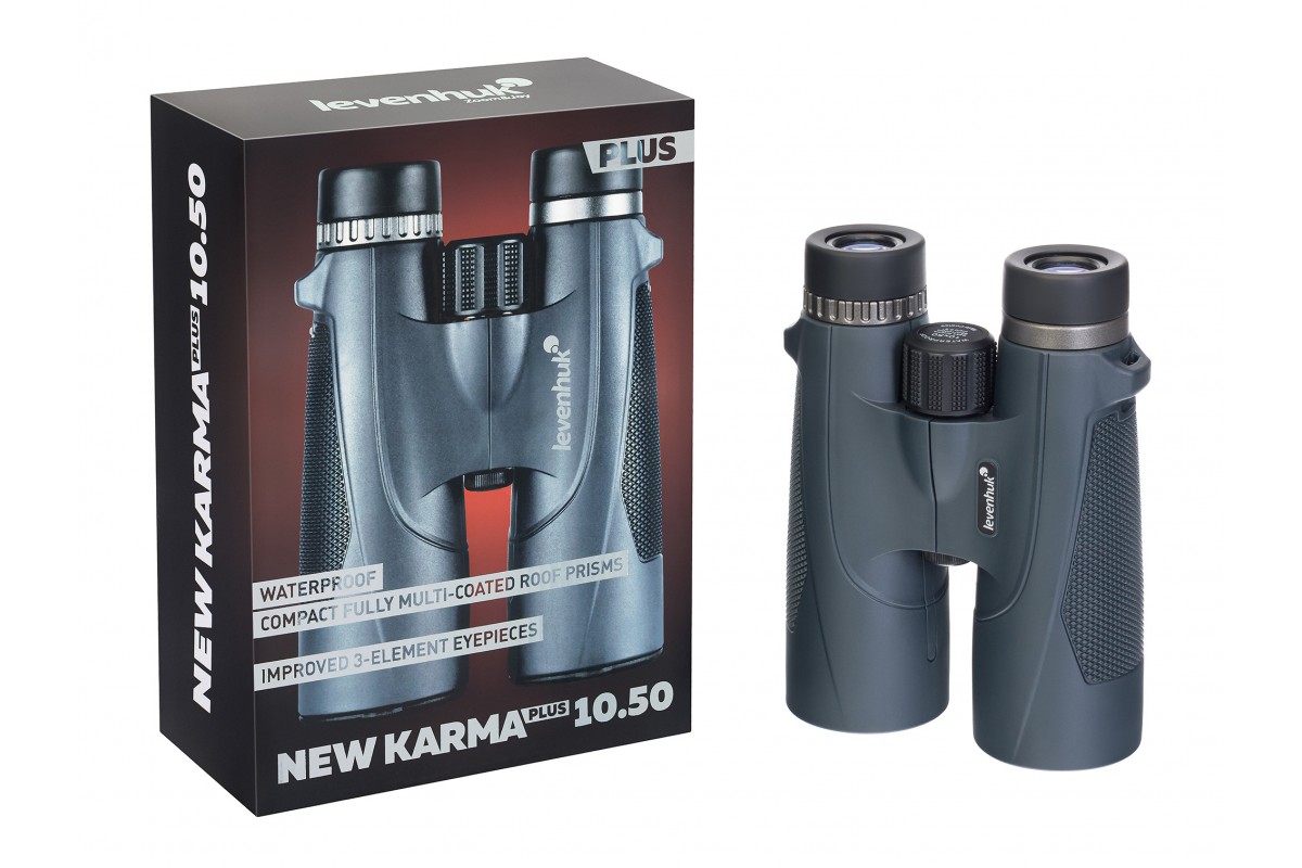 Бинокль Levenhuk New Karma PLUS 10x50 – это сочетание высококачественной оптики, прочного корпуса и эргономичного дизайна. 10-кратное увеличение и светосильные объективы с апертурой 50 мм превращают этот прибор в идеальный инструмент для наблюдений на средние и дальние дистанции, во время которых пользователь не пропустит ни одной детали. Этот бинокль станет отличным выбором для охотников, рыбаков, натуралистов, охранников на объектах и участников спасательных операций, позволяя в подробностях изучать окружающую среду в любую погоду и в любых световых условиях.