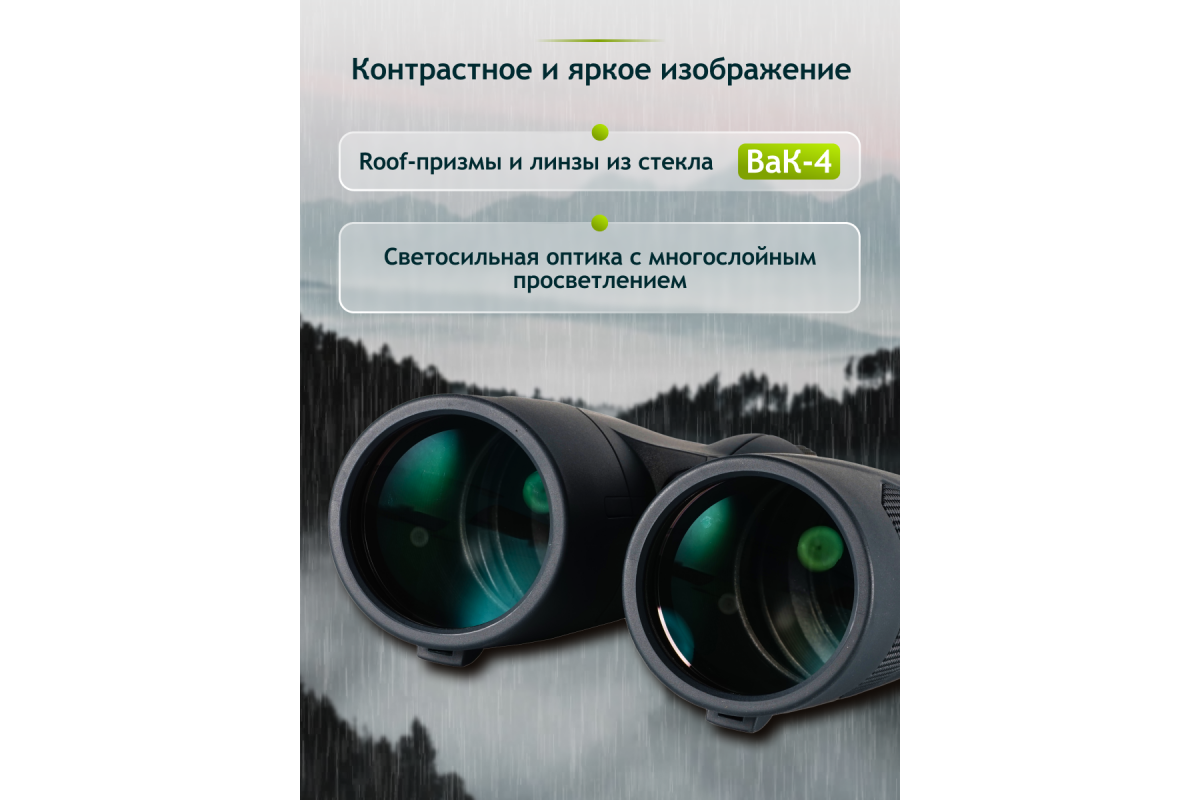 Линзы и призмы прибора имеют многослойное просветляющее покрытие, придающее изображению дополнительной яркости, четкости и реалистичности даже в сумерках, а азотное заполнение корпуса предотвращает запотевание оптики при скачках окружающей температуры – теперь ничто не помешает вам вести эффективную работу на местности даже в центре протестующей природы.
