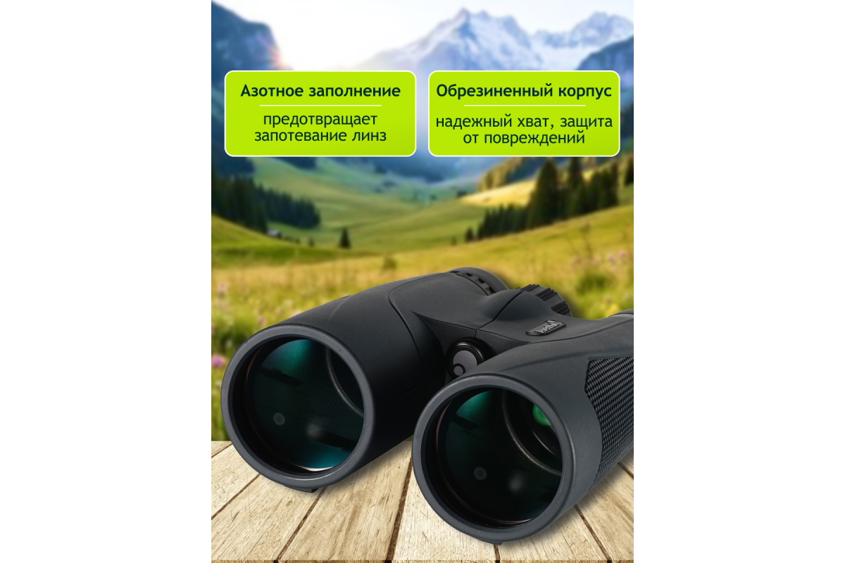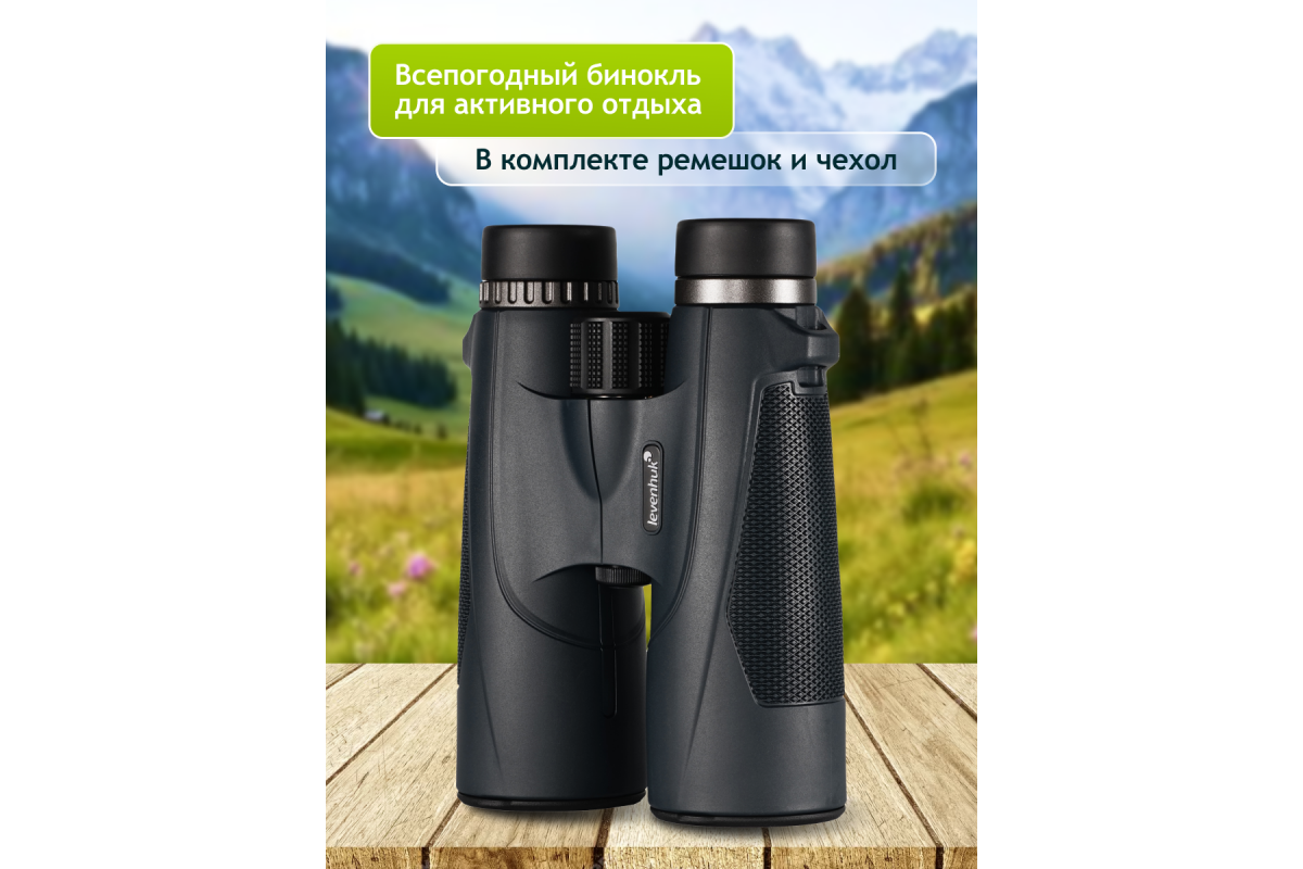 Levenhuk New Karma PLUS 10x50 превосходно защищен от воздействия пыли, воды, песка и грязи – его корпус герметизирован по стандарту IP67. Бинокль можно без опаски использовать рядом с водоемами – он выдержит кратковременное погружение в воду, если вы случайно выроните прибор. Но шансы этого сведены к минимуму: снаружи корпус бинокля покрыт резиновым напылением, сохраняющим надежное сцепление с ладонями и пальцами, даже если они полностью промокли под дождем.