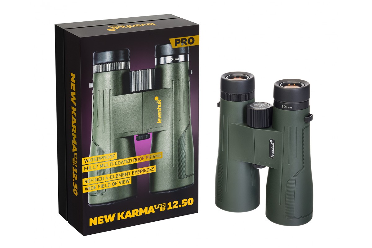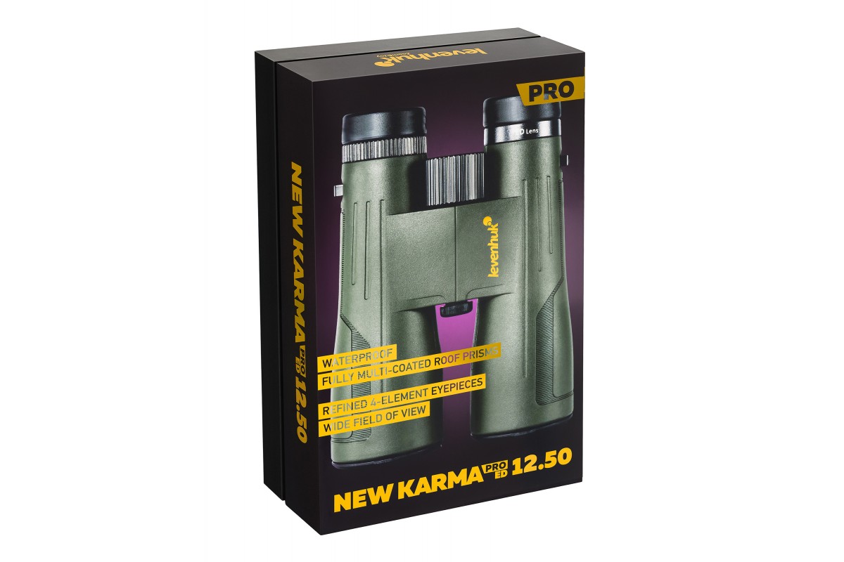 Levenhuk New Karma PRO ED 12x50 можно использовать из рук или со штатива (для установки потребуется адаптер – приобретается отдельно). Межзрачковое расстояние настраивается. Возможна диоптрийная коррекция в пределах ±4 D.