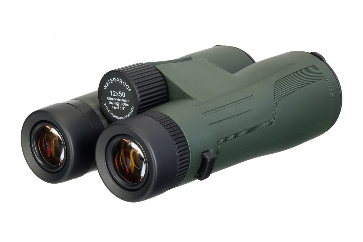 Увеличение бинокля составляет 12 крат, поле зрения – 5,8°. Главная отличительная особенность прибора – превосходно продуманная оптическая система, основанная на компактных roof-призмах, изготовленных из просветленного стекла BaK-4, и линз из высококачественного ED-стекла. Окуляры состоят из четырех элементов в трех группах, что помогает сделать наблюдаемую картинку еще четче и реалистичнее. И призмы, и линзы бинокля имеют многослойное просветляющее покрытие, помогающее видеть окружающий мир в высоком качестве и достойной яркости даже при работе в сумерках.