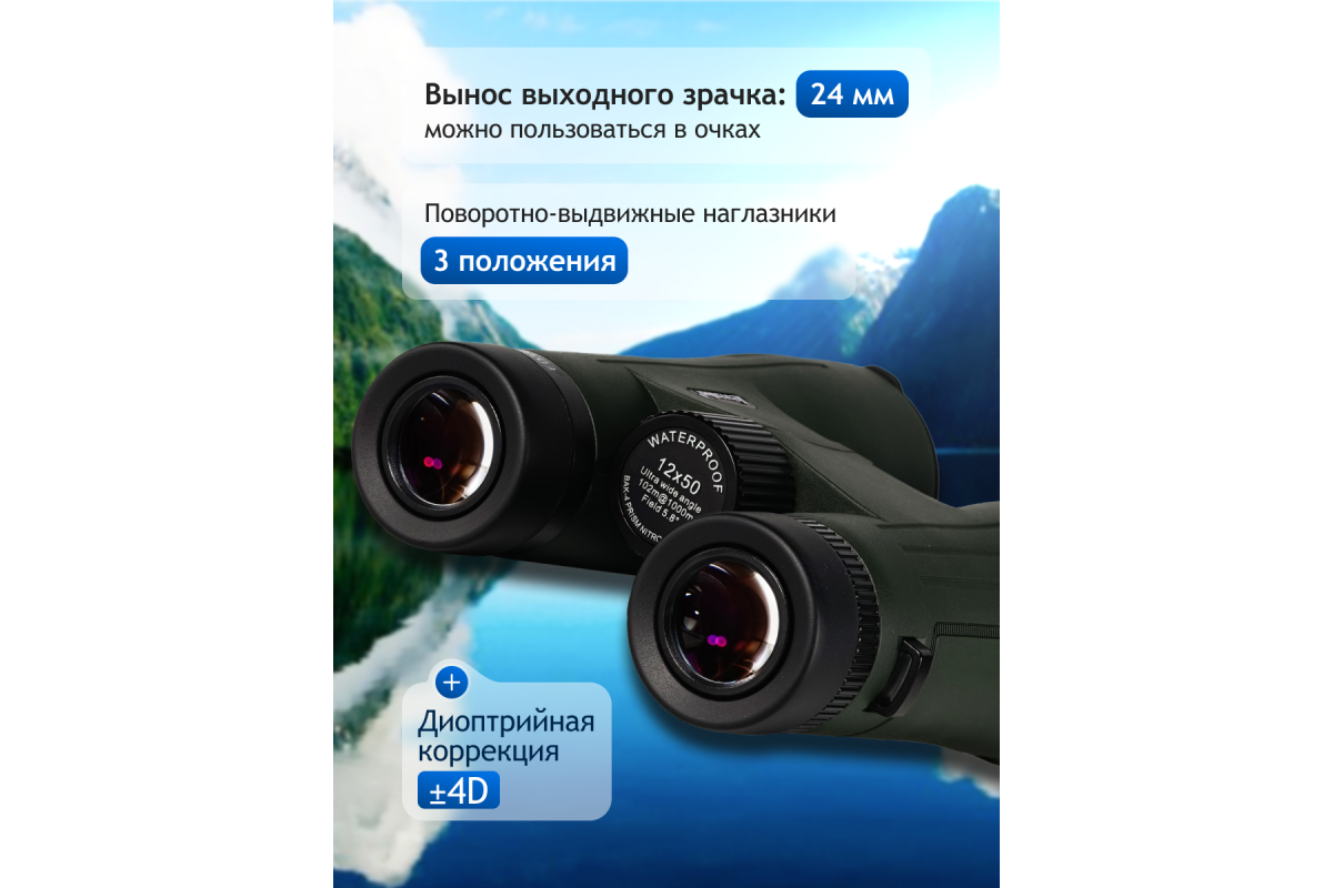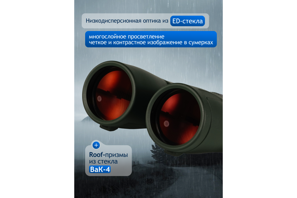· Всепогодный бинокль для использования во время дождя, снегопада, в тумане и рядом с водоемами