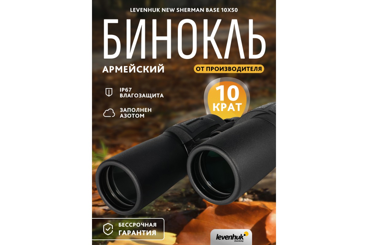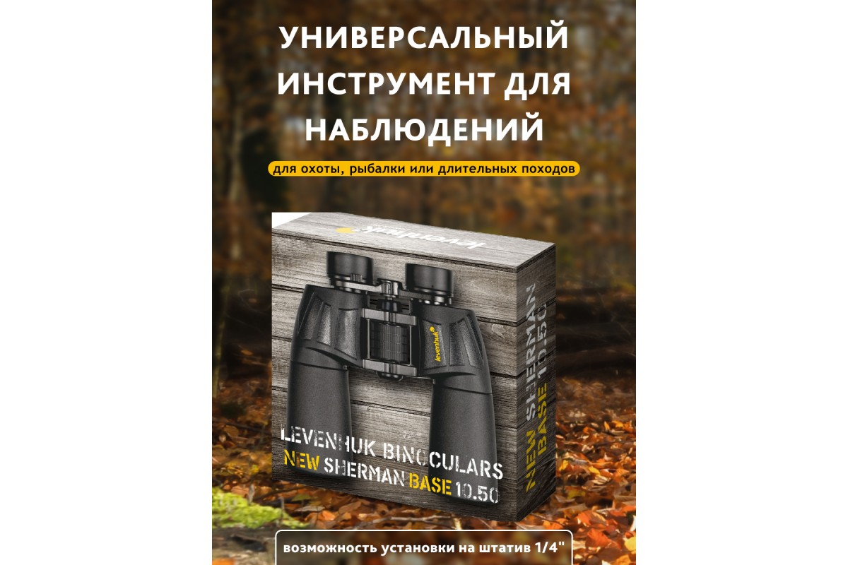 Бинокль Levenhuk New Sherman BASE 10x50 – это сбалансированное сочетание хорошего светопропускания, высокой четкости изображения и прочной конструкции. С 10-кратным увеличением и 50-миллиметровыми объективами он станет отличным спутником для любителей активного отдыха, будь то охота, рыбалка или наблюдение за птицами. Его герметичный корпус из алюминиевого сплава обеспечивает надежную работу в самых сложных условиях.