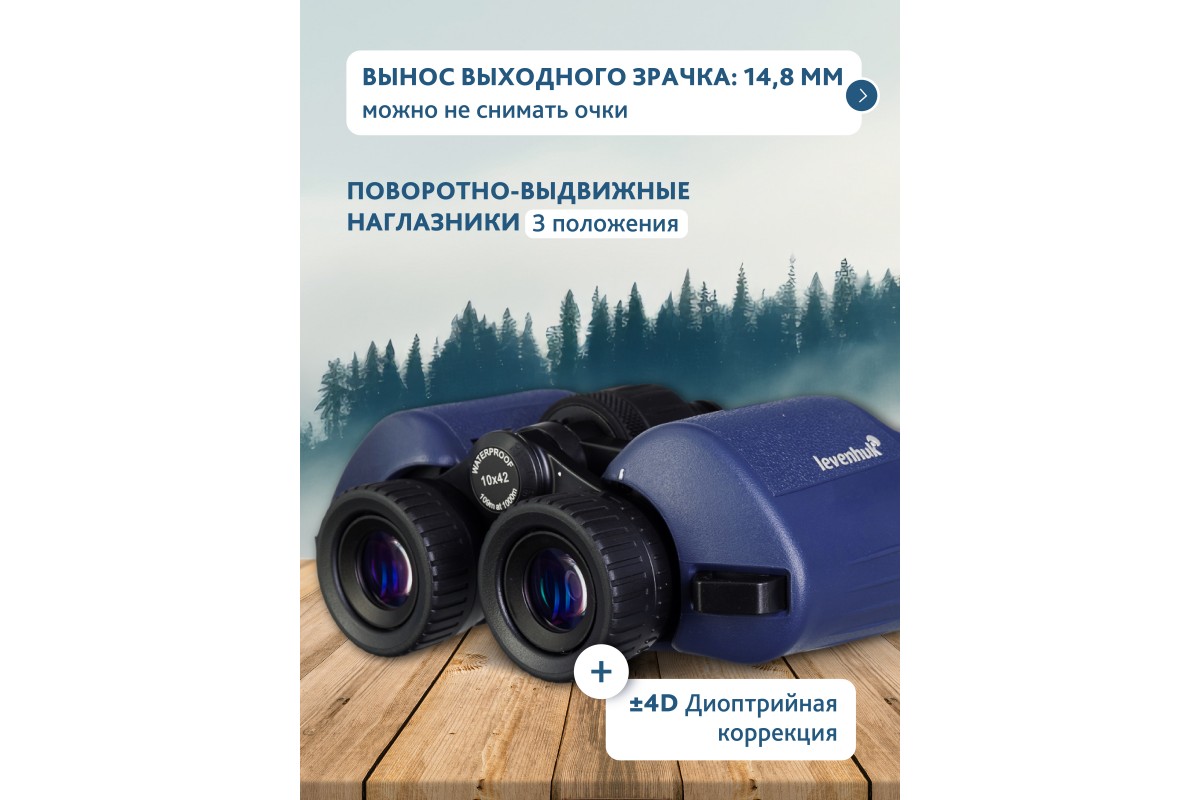 Для максимального комфорта и индивидуальной настройки бинокль предоставляет несколько опций: регулировку межзрачкового расстояния, настройку диоптрий и поворотно-выдвижные наглазники с 3 положениями фиксации, что позволяет каждому пользователю адаптировать прибор под свои особенности. В комплекте с биноклем идут защитные крышки для окуляров и объективов, которые обеспечивают надежную защиту линз от пыли и повреждений при транспортировке и хранении.
