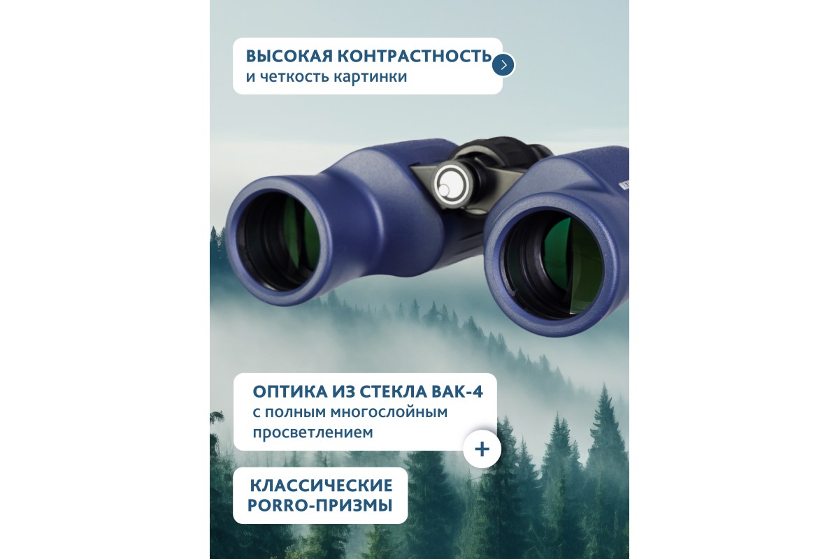 В оптической системе бинокля используются классические призмы Porro, а окуляры, состоящие из 4 элементов в 3 группах, обеспечивают исключительную резкость и чистоту изображения. Линзы и призмы покрыты многослойным просветляющим покрытием, которое значительно повышает светопропускание и улучшает контрастность. В результате, вы получаете яркие, насыщенные и детализированные изображения, даже в условиях слабого освещения. Чтобы избежать запотевания линз при высокой влажности, корпус бинокля заполнен азотом, что обеспечивает бесперебойную работу даже в самых сложных условиях.