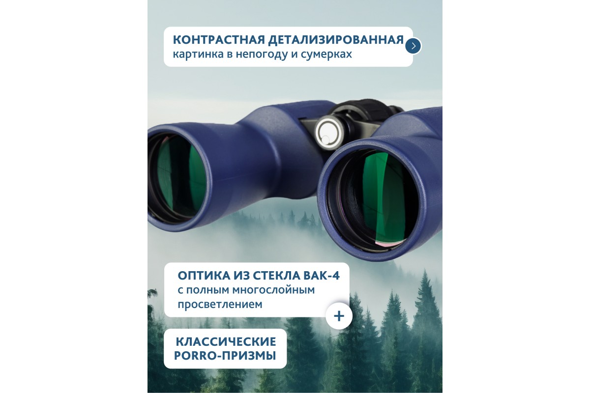 Оптическая система прибора использует призменную конструкцию Porro и линзы из высококачественного стекла BaK-4, что обеспечивает превосходную передачу света и точную цветопередачу. Линзы и призмы покрыты многослойным просветляющим покрытием, которое значительно улучшает контрастность изображения и позволяет различать мельчайшие детали даже в условиях слабого освещения или сумерек. Это делает бинокль подходящим для наблюдений в условиях низкой освещенности, таких как раннее утро или поздний вечер.