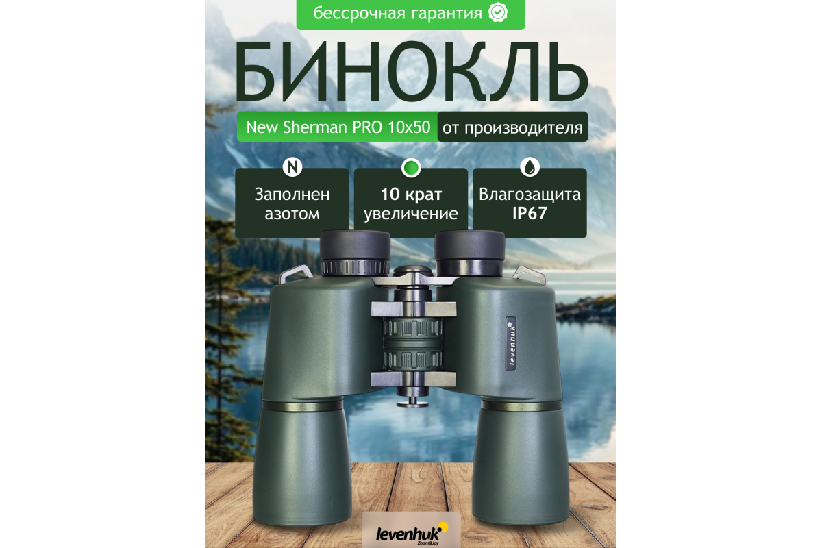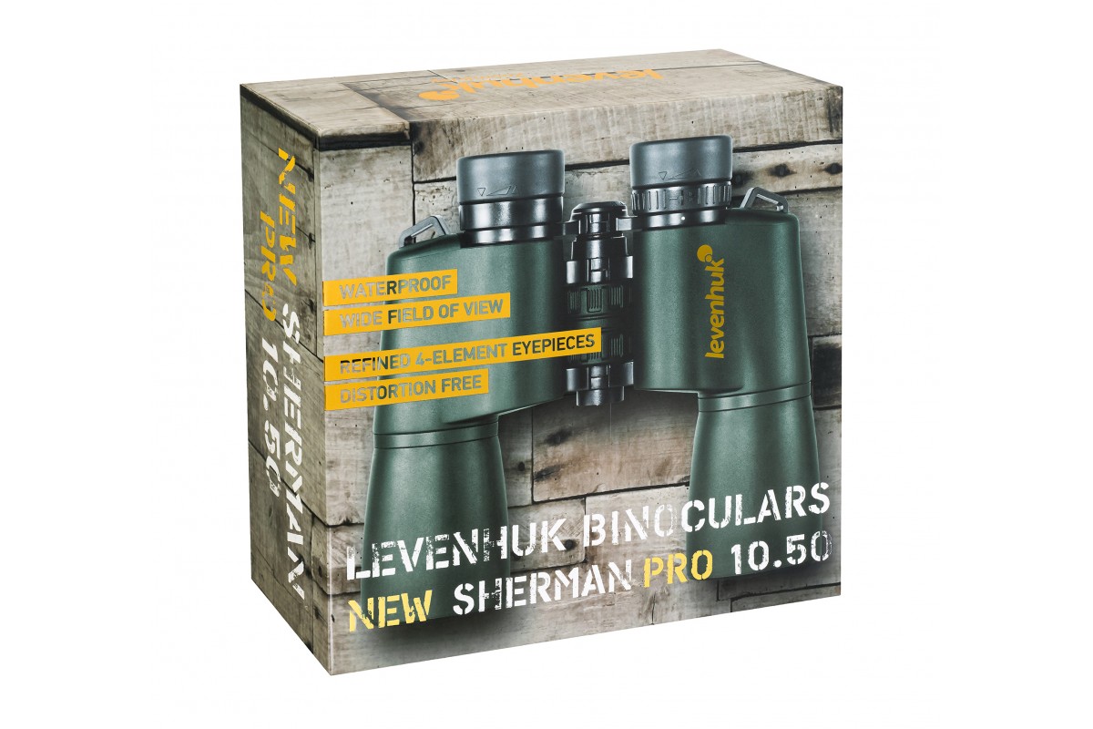 Levenhuk New Sherman PRO 10x50 – универсальный полевой бинокль с увеличением 10x и светосильной оптической системой на призмах Porro. Его оптика выполнена из бариевого крона с высоким коэффициентом преломления и имеет многослойное просветление. Многоэлементная конструкция, большой диаметр объективов и выбор материалов высокого качества – все это тщательно продумано для достижения высокой детализации яркого и четкого изображения в любых условиях наблюдений, в том числе при скудном освещении.