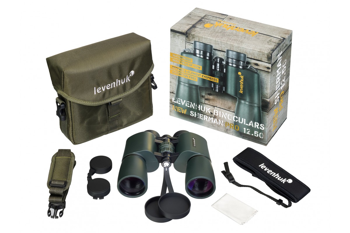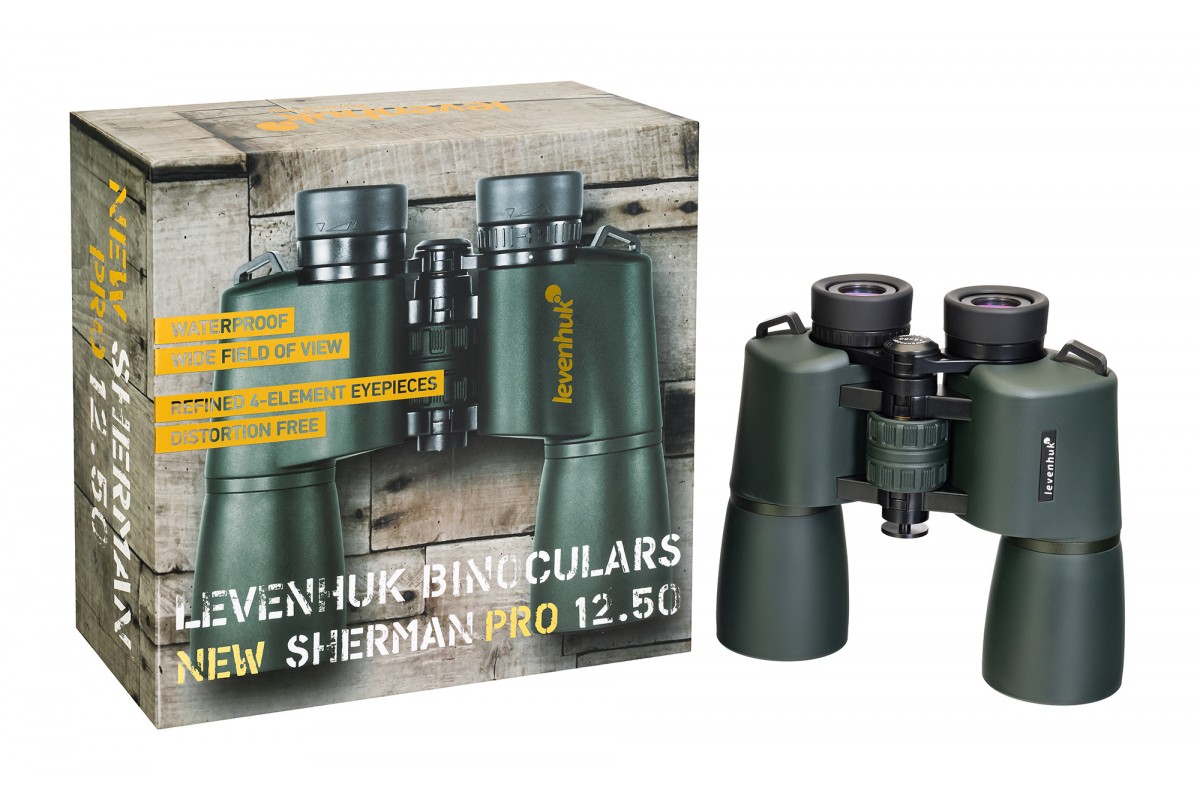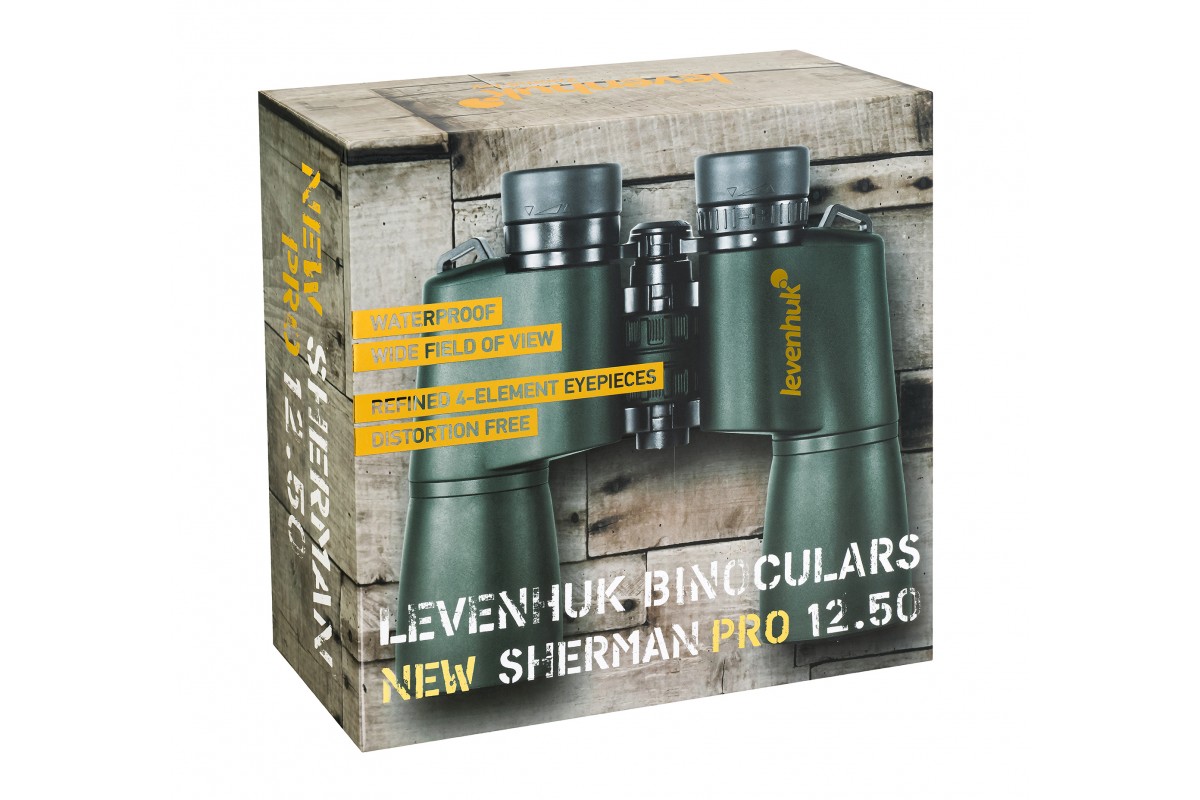 Levenhuk New Sherman PRO 12x50 – универсальный бинокль с 12-кратными светосильными объективами. Этот прибор с крупной апертурой удовлетворит потребности как технических специалистов, так и натуралистов и охотников. Высокое качество просветленной оптики из бариевого крона обеспечивает впечатляющую четкость изображения с сохранением естественных цветов. Сумеречный фактор представленного бинокля составляет 24,5 – отличный показатель, гарантирующий формирование ясной картинки даже в условиях недостаточного освещения.