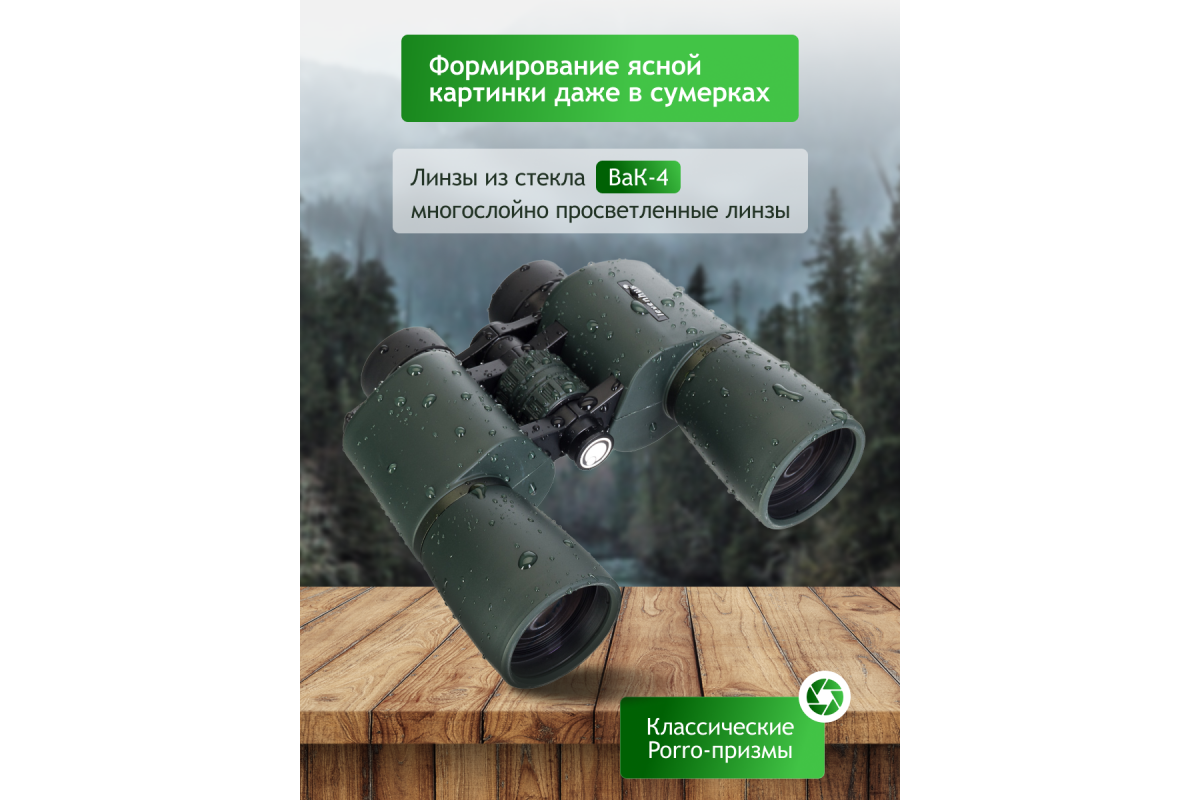 · Призмы Porro, светосильные объективы, материал оптики – BaK-4