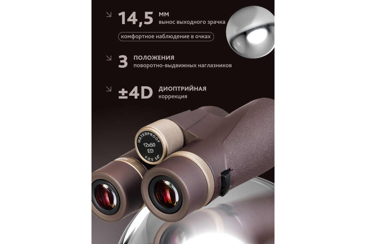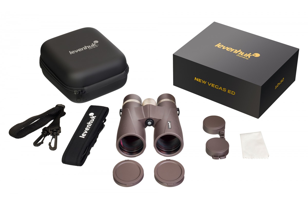 Бинокль Levenhuk New Vegas ED 12x50 – высококлассный прибор, который оценят любители и профессионалы за его мощную оптику, качественное изображение и устойчивость к воздействию природных факторов. Эта модель станет отличным помощником при работе в сложных полевых условиях и пригодится любому охотнику, натуралисту, любителю походов и активного отдыха далеко за городом, охраннику и спасателю. Бинокль подходит для работы на дальних и очень дальних дистанциях, для прицельных и обзорных наблюдений – такая универсальность обеспечивается 12-кратным увеличением и полем зрения 5,4° (95 м на удалении 1000 м). Светосильные объективы с апертурой 50 мм и многослойно просветленная оптика (специальное покрытие нанесено и на призмы, и на линзы) помогают вести эффективную работу в глубоких сумерках, в пасмурную погоду и т. д.