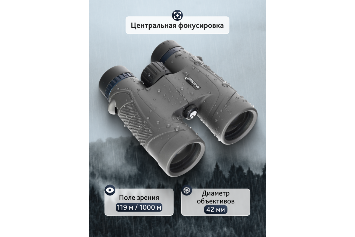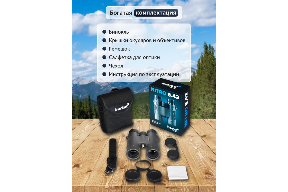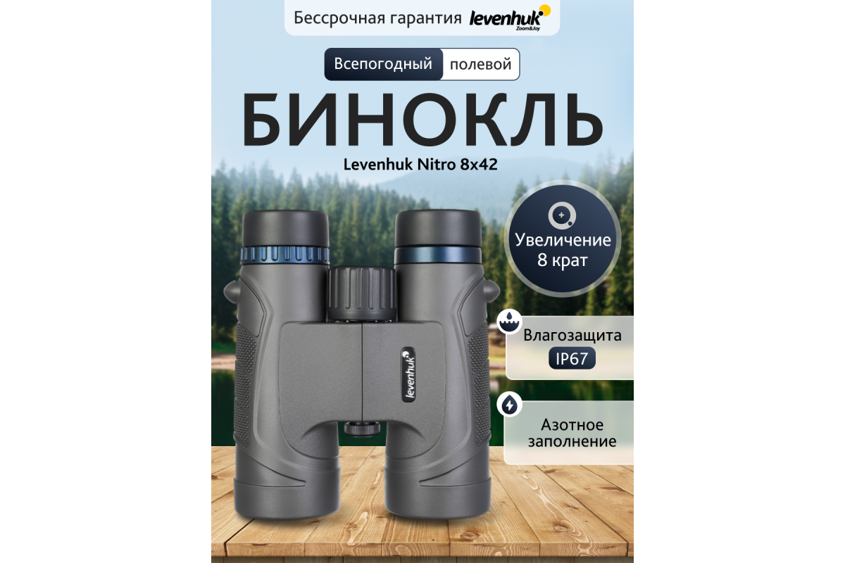 Если вы собираетесь на очередную охотничью вылазку, на рыбалку или в туристический поход, вам обязательно пригодится 8-кратный бинокль Levenhuk Nitro 8x42. Водозащищенная модель – прекрасное решение для наблюдений в сложных полевых условиях. Внутреннее пространство корпуса заполнено азотом: это предотвращает запотевание линз изнутри при перепадах температуры.