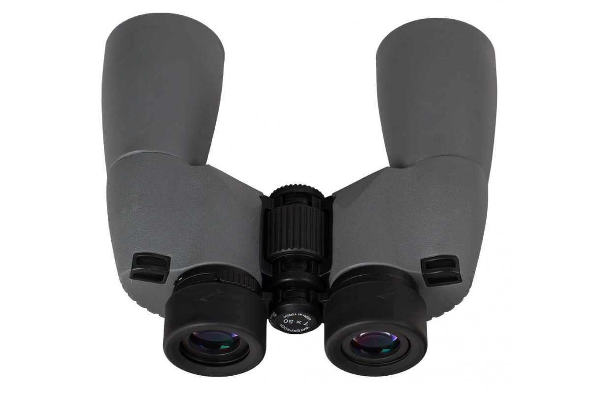 Корпус бинокля герметичен, поэтому даже малейшие частицы пыли, грязи и влаги не попадают внутрь прибора. Плотное светло-серое покрытие корпуса смягчает удары и обеспечивает удобный захват.