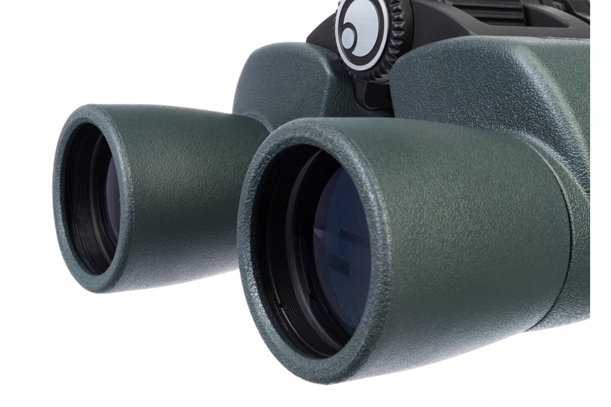 В конструкции бинокля используются крупные призмы Porro. Объективы состоят из двух линз, а окуляры – из пяти элементов в трех группах. Это позволяет получить плоское поле зрения без искажений изображения. На все оптические поверхности нанесено многослойное просветляющее покрытие. Большой вынос выходного зрачка дает возможность вести наблюдения в очках.