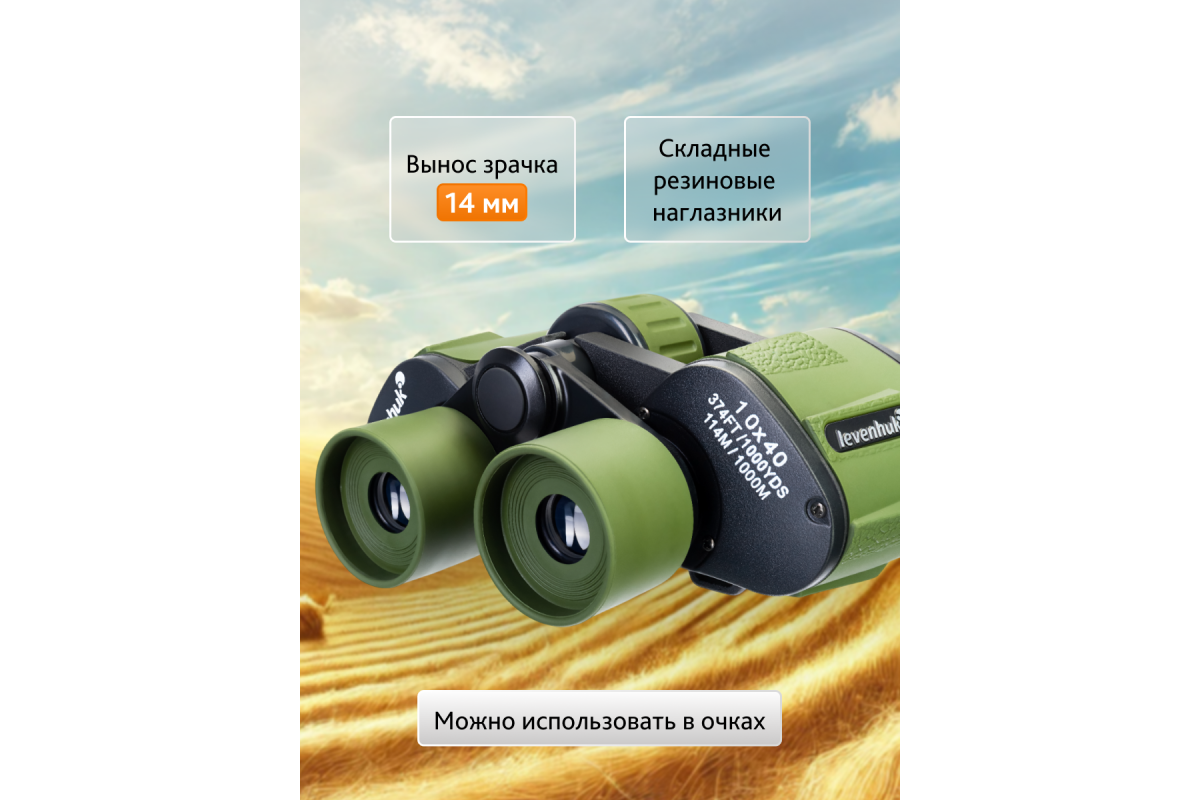 Картинка, формируемая оптикой бинокля Levenhuk Travel 10x40, радует яркостью, отличным контрастом и четкостью. Этого удалось добиться благодаря применению Porro-призм и стекла BK-7 с полным просветлением. Оба объектива наводятся на резкость одновременно – за это отвечает удобный барабан центральной фокусировки. Предусмотрена возможность складывать наглазники и подстраивать диоптрии в широком диапазоне, что высоко оценят пользователи с неидеальным зрением.