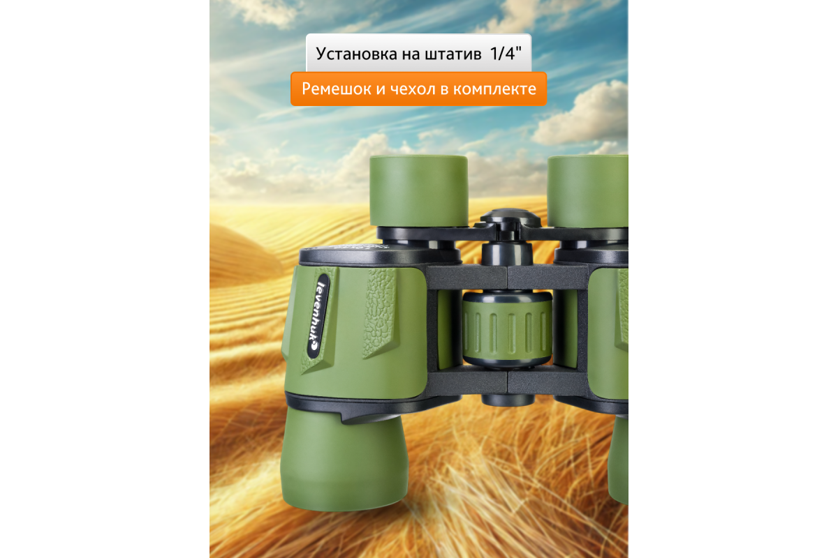 В конструкции бинокля есть крепление для установки на штатив стандартного диаметра. Переходник для установки приобретается отдельно.