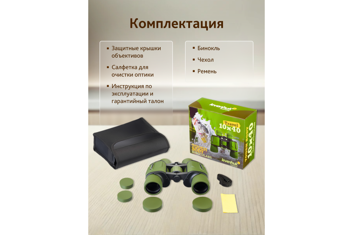 Levenhuk Travel 10x40 – полевой бинокль в надежном алюминиевом корпусе. Он станет настоящей находкой для охотников, любителей походов и активного отдыха на природе. С его помощью можно изучать окрестности на увеличении 10 крат, прокладывать маршруты и выбирать место для туристической стоянки. Удобно, что ближний предел фокусировки составляет всего 4 метра – это значит, что для наблюдений доступны не только пейзажи в отдалении, но и объекты, расположенные сравнительно недалеко от наблюдателя.