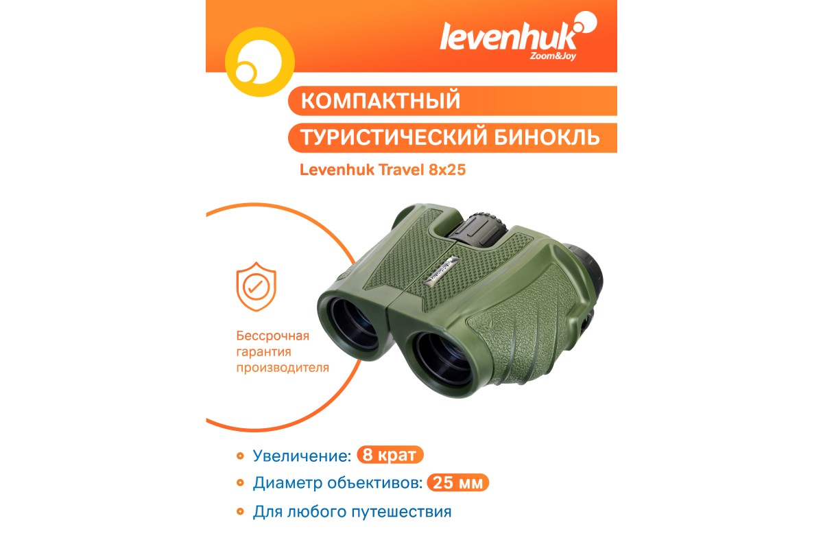 Туристический бинокль Levenhuk Travel 8x25 – компактный оптический помощник для изучения красот природы и городских достопримечательностей. Его удобно захватить с собой на любую прогулку. Благодаря небольшим размерам и весу бинокль не обременит своего владельца в дороге. Изучать окружающий мир можно на увеличении 8 крат, причем доступны не только отдаленные цели, но и близкорасположенные – бинокль фокусируется уже на расстоянии 3 метра. То, что нужно при посещении зоопарка, спортивной арены или уличного фестиваля!