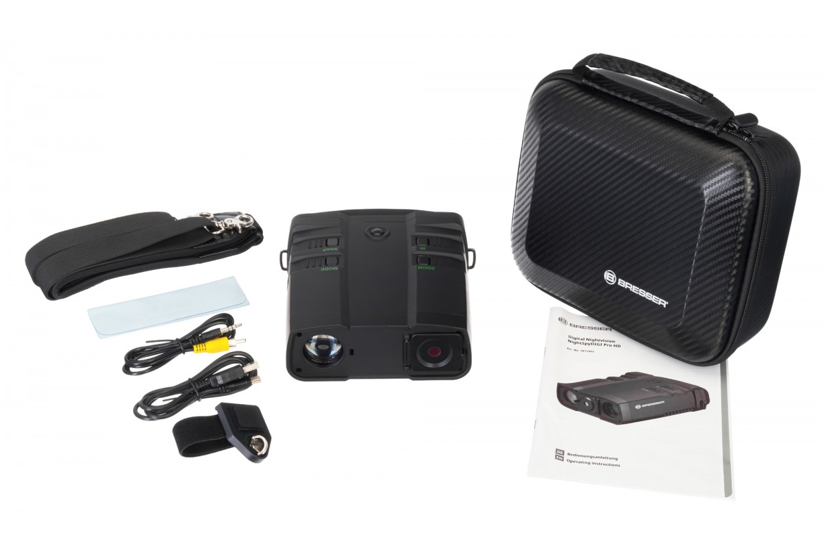 Bresser NightSpyDIGI Pro FHD 3,6x – это бинокль ночного видения с оптическим и цифровым увеличениями. Внутри установлен цифровой преобразователь, поэтому прибор можно использовать не только ночью, но и в дневное время – засветка ему не страшна. ПНВ дополнен ИК-подсветкой и рекордером, поддерживает использование карт памяти объемом до 128 ГБ, работает от батареек или внешнего аккумулятора, может подключаться к телевизору и компьютеру. Этот прибор будет незаменим при выслеживании диких животных во время охоты и пригодится при охране территорий.