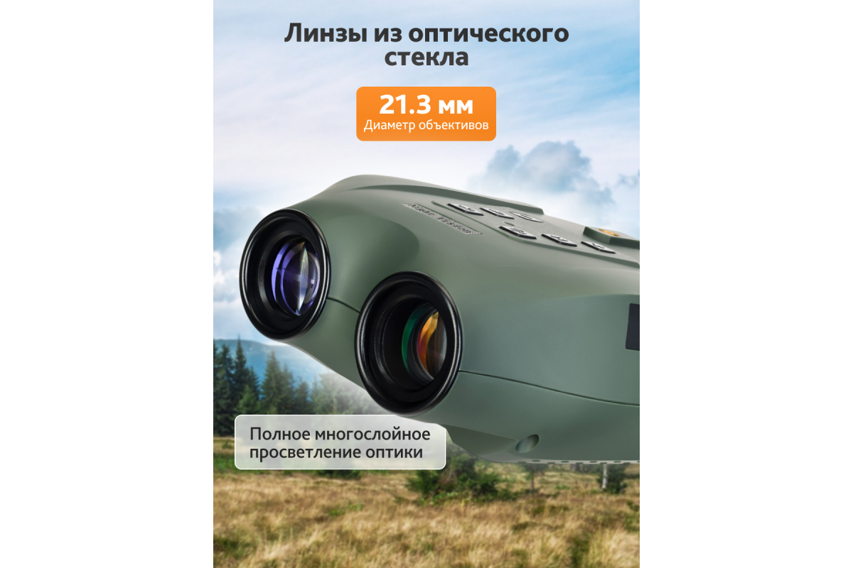 • Бинокль с апертурой 21,3 мм для ночных и дневных наблюдений