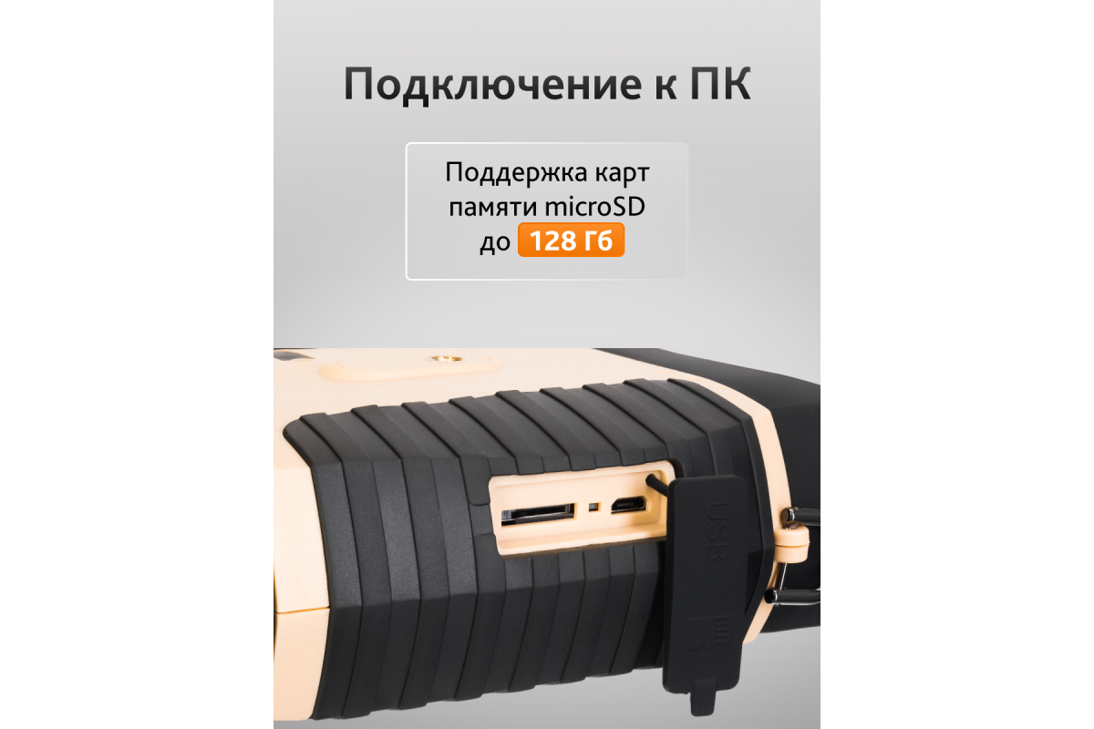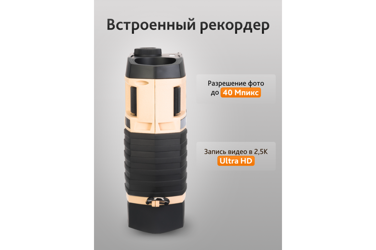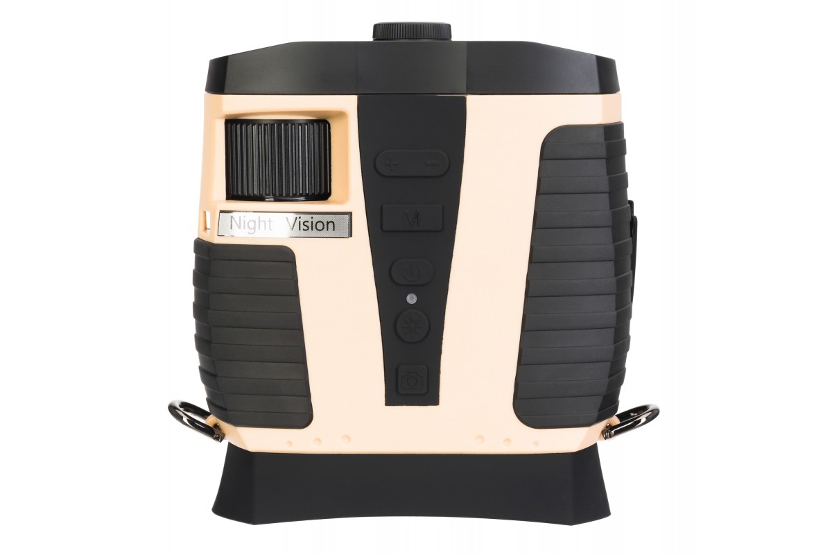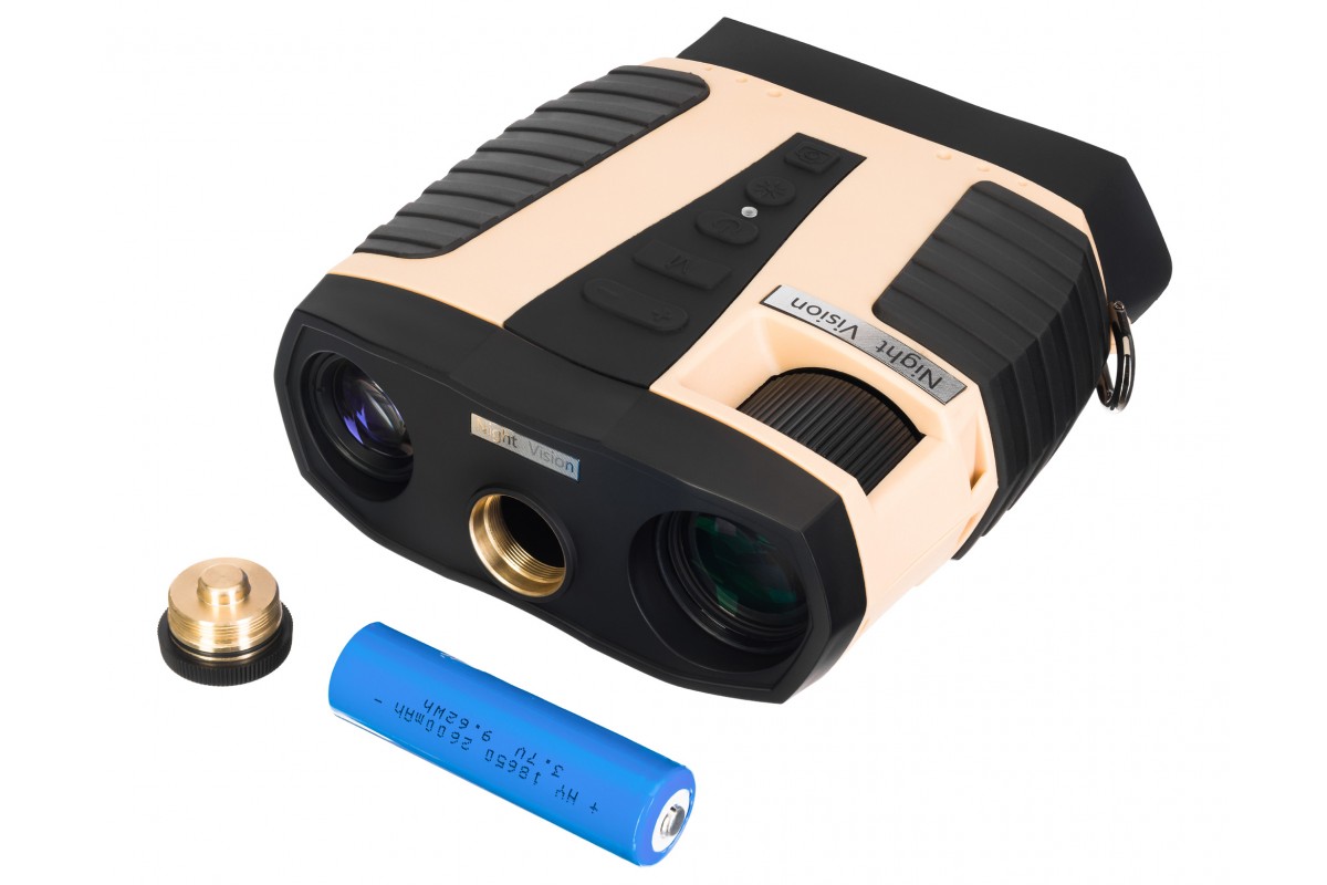 Прибор ночного видения снабжен встроенным рекордером. Съемку можно вести в высоком качестве: для фото оно достигает 40M, для видео – 2,5K (Ultra HD). Прибор поддерживает карты памяти объемом до 128 ГБ – этого хватает для сохранения большого количества материалов. Чтобы избежать дрожания рук и добиться статичной четкой картинки, лучше вести съемку, установив бинокль на штатив, который уже есть в комплекте. Он оснащен поворотной установочной площадкой, позволяющей плавно менять положение бинокля.