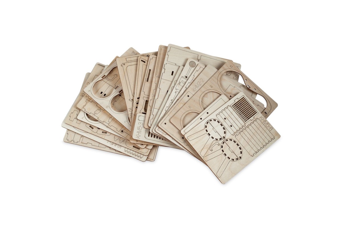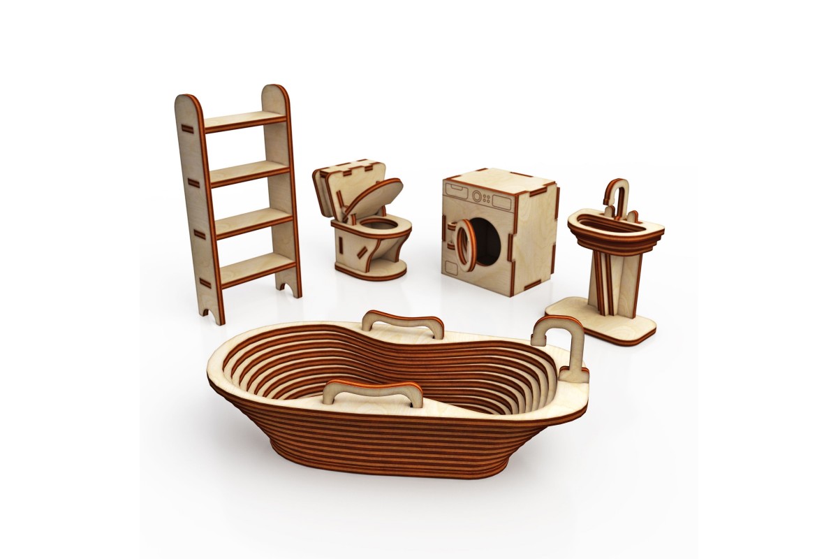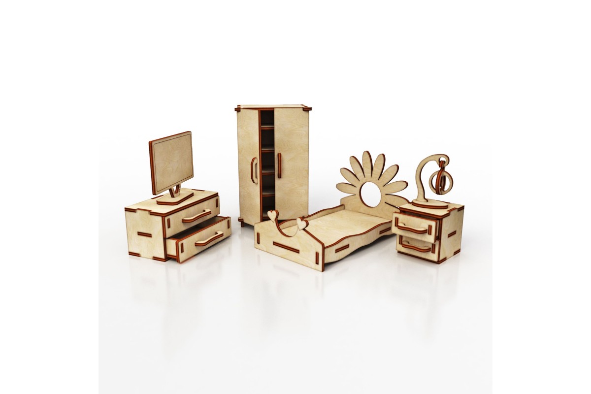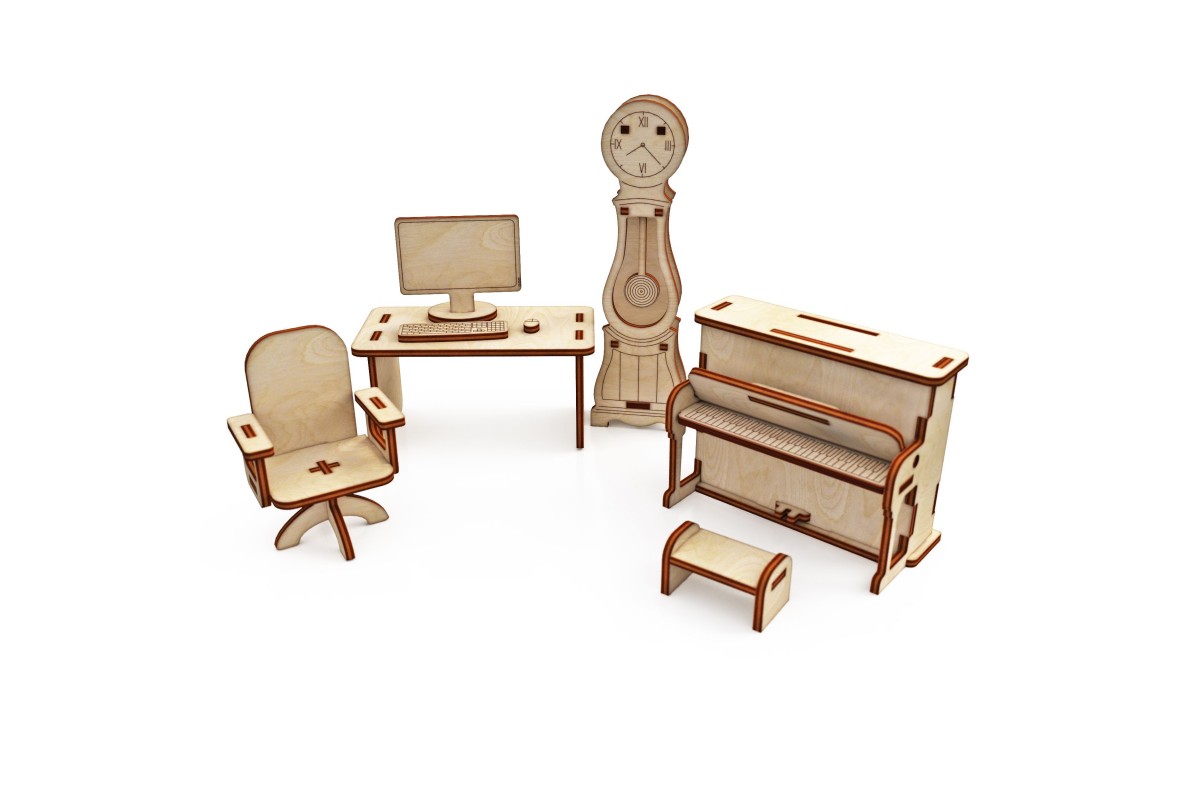 Мебель выполнена из березовой фанеры. Все элементы собираются без клея, просто вставляются в пазы, крепление очень прочное и надежное.