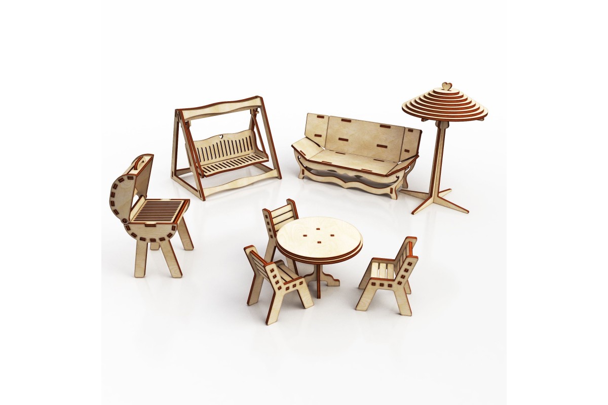 Такого набора классных элементов еще не было. Садовая мебель с диванчиком и зонтом. У мангала открывается крышка, а на качелях могут кататься ваши герои.