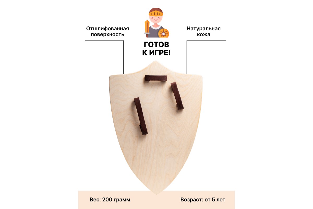 Большой деревянный щит отлично подходит для ролевых игр, в которых ребенок сможет почувствовать себя рыцарем, викингом, воином. Деревянный детский щит для мальчика имеет повышенную прочность к ударам и будет надежной защитой в детских боях на деревянном оружии. Рыцарский щит из дерева изготовлен из березовой фанеры с удобными рукоятками. Каждый щит обладает уникальным дизайном, чтобы привлечь внимание и воодушевить вашего ребенка, отшлифован и покрашен. Не имеет заусенцев и готов к игре с деревянными мечами от Древа Игр. Размер: 490x360x10 мм.