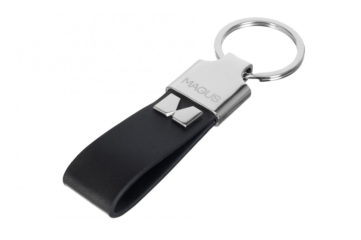 Брелок MAGUS из черной искусственной кожи – это фирменный аксессуар, напоминающий о любимом бренде в повседневной жизни. Его можно прикрепить на сумку, рюкзак, куртку, связку ключей и т. д. Брелок достаточно крупный и заметный, его длина составляет 11 сантиметров с учетом колечка для крепления. Основной акцент – металлический шильдик с логотипом MAGUS, а также гравировка с названием бренда.