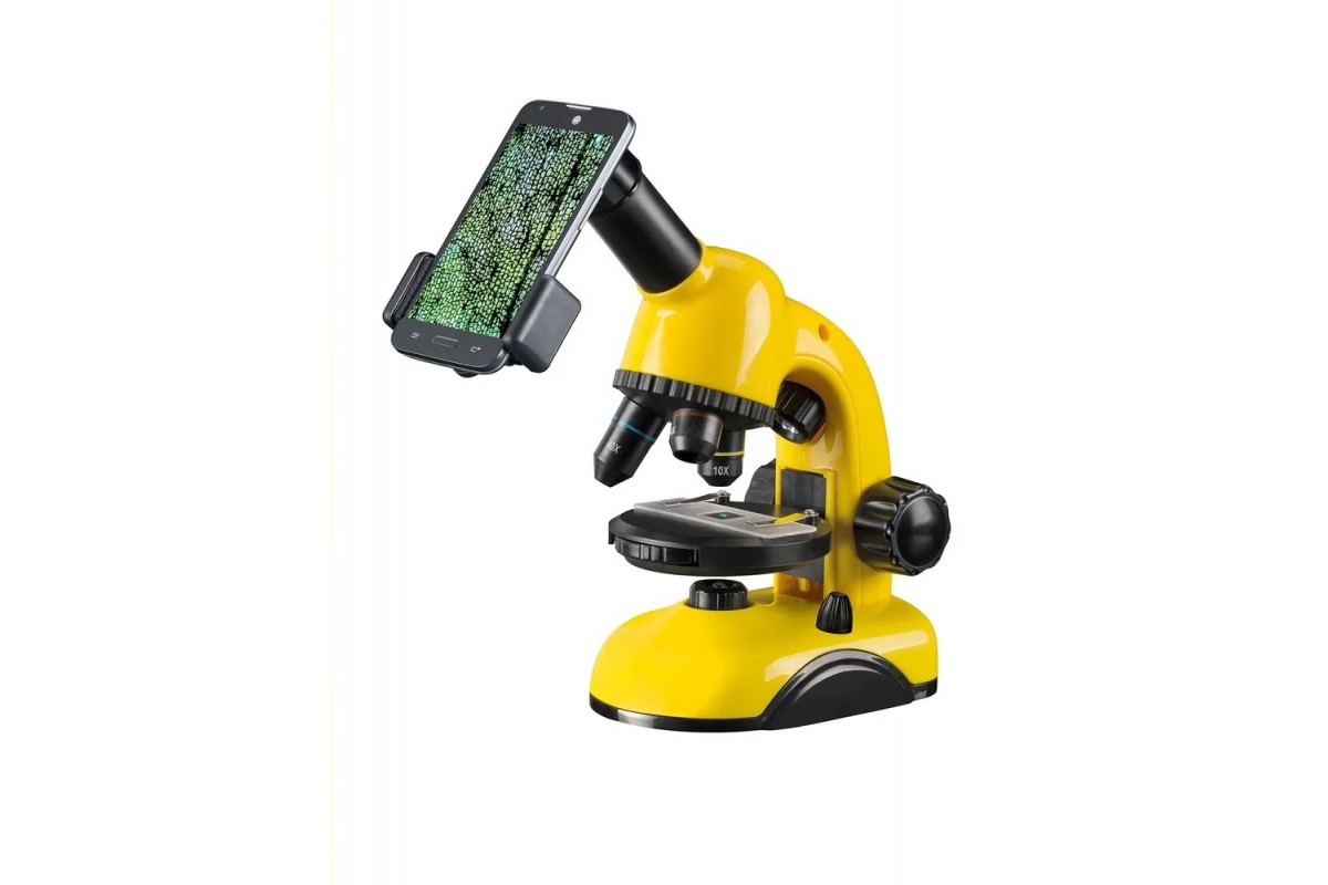 Среди комплектных аксессуаров также есть адаптер для смартфона. Он позволяет закрепить на микроскопе мобильное устройство для использования встроенной камеры для фото- и видеосъемки образцов. Фактически это превращает оптический прибор в аналог цифрового микроскопа.