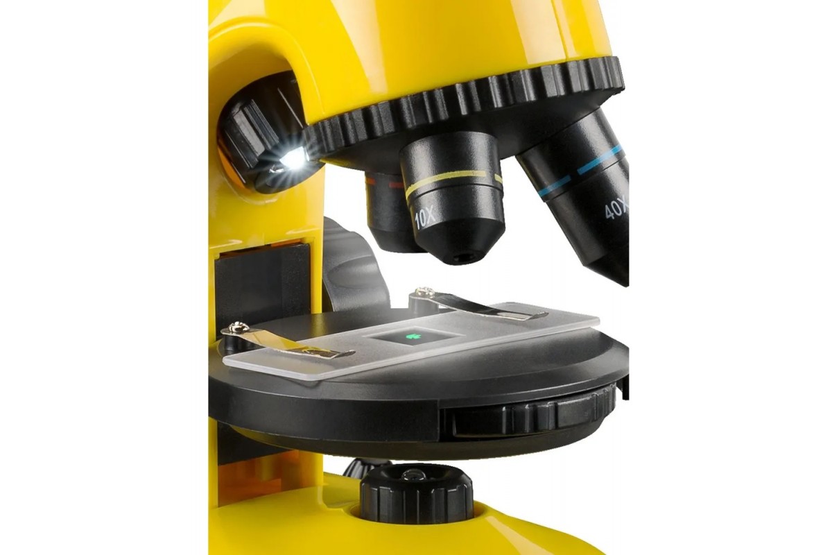 Микроскоп Bresser National Geographic Biolux 40–800x – это прекрасная возможность познакомить ребенка с удивительным микромиром. Он позволяет проводить множество исследований по методу светлого поля с использованием проходящего и отраженного света, то есть изучать можно не только прозрачные микропрепараты, но и полупрозрачные и непрозрачные образцы. Для наблюдений можно использовать как готовые наборы, так и самостоятельно приготовленные препараты. К тому же в комплект поставки уже включен набор для опытов, в котором есть все необходимое для экспериментов.
