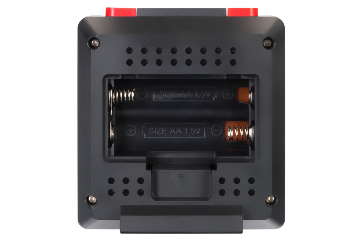 На внешней панели расположены монохромный экран и кнопки управления. Кнопка будильника расположена сверху. Информация на экране подана четко и ясно, она разделена на блоки и хорошо читается даже с большого расстояния. В ночное время, чтобы увидеть время или температуру, можно включить подсветку.