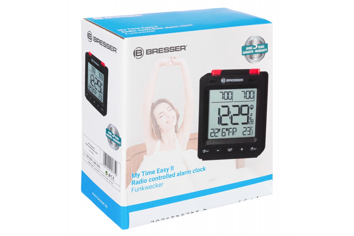 Цифровые часы Bresser MyTime Easy II не только показывают время, но также информируют о дате и дне недели, изменяют температуру в помещении и выполняют функцию будильника. При этом можно установить одновременно два независимых времени срабатывания. Также удобно, что будильник дополнен функцией повтора сигнала.