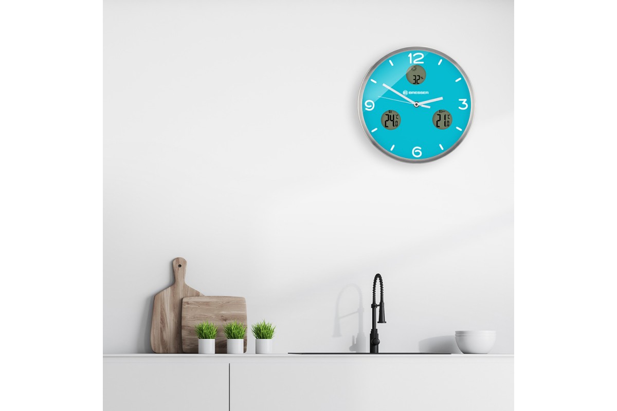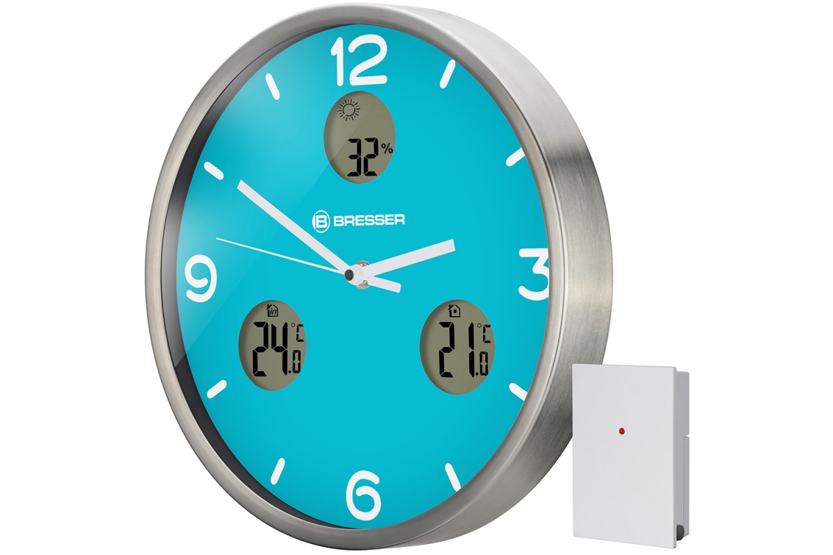 Bresser MyTime io NX Thermo/Hygro – настенные часы и домашняя метеостанция в одном приборе. Они показывают время, измеряют температуру внутри и снаружи помещения, определяют уровень влажности воздуха в квартире. Также эти часы стильно выглядят и способны стать отличным подарком к любому празднику.