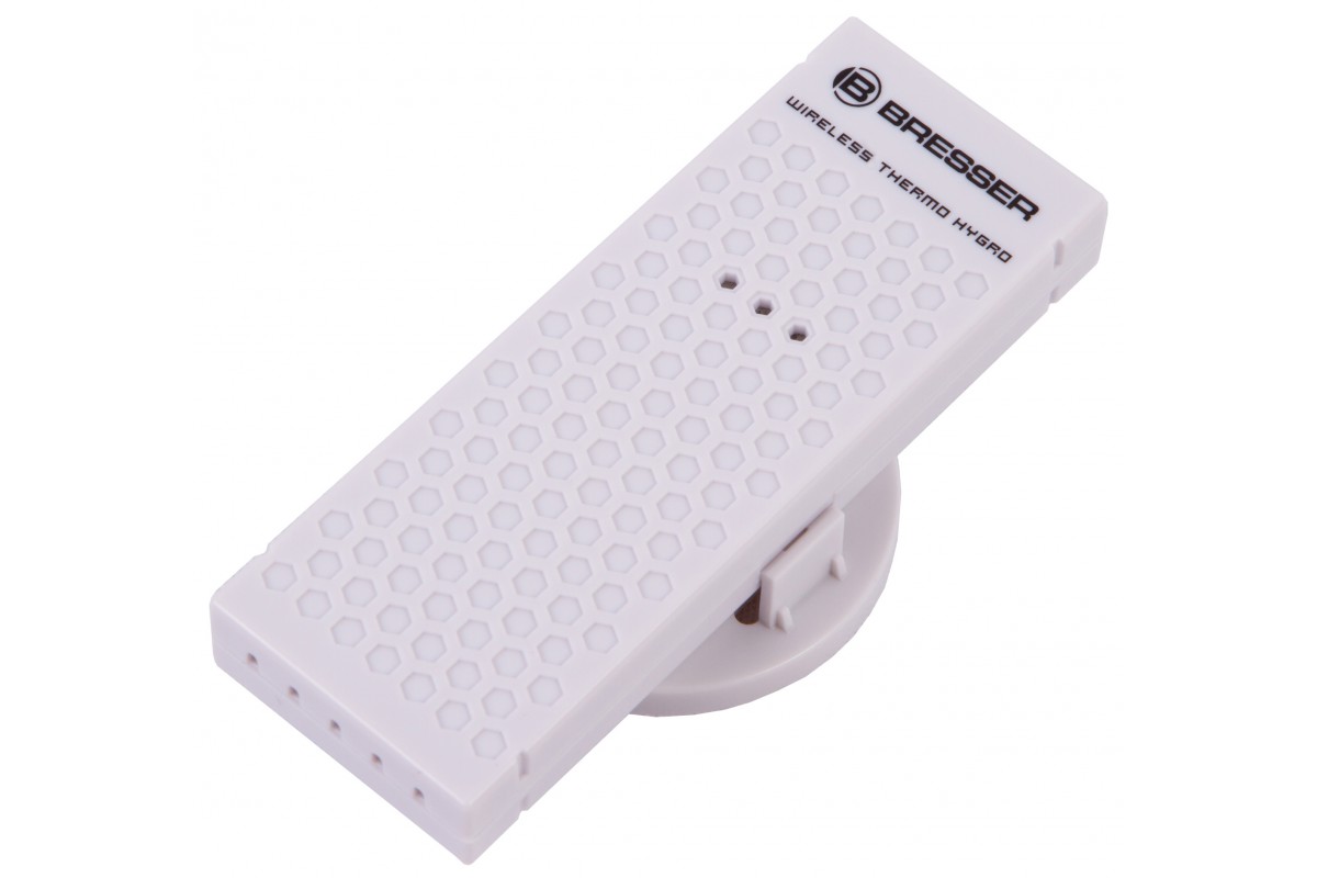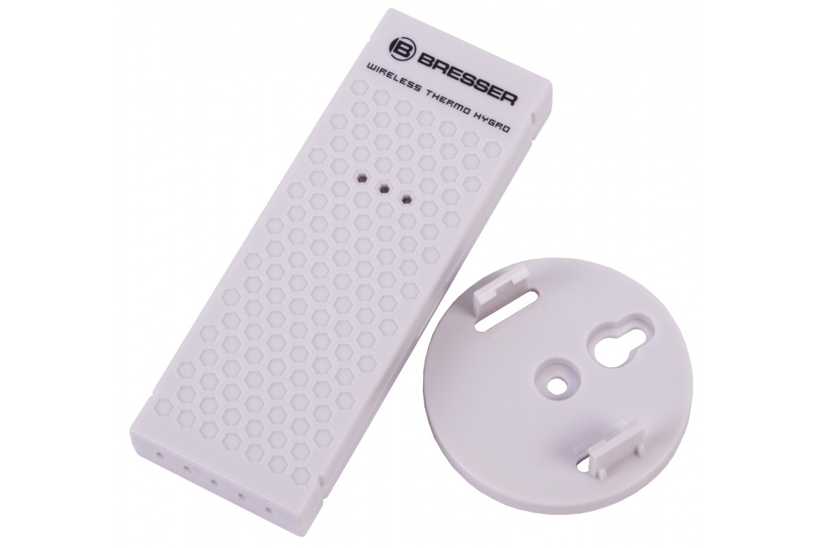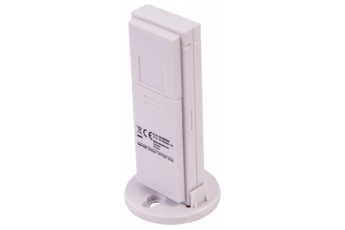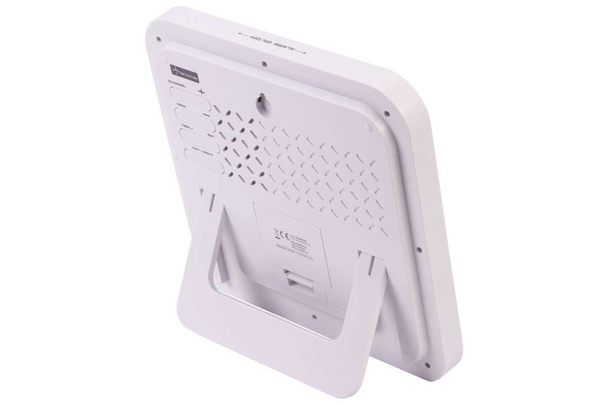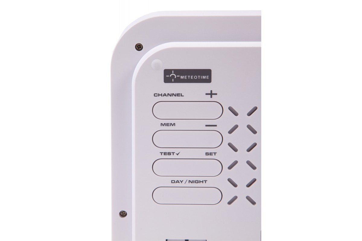 Вместе с метеостанцией в комплекте идет беспроводной датчик. Он отвечает за измерения снаружи помещения и может быть установлен на расстоянии до 30 метров от основного модуля. Данные передаются на часы по радиоканалу, прокладывать провода не нужно. Экран часов крупный и хорошо различимый с большого расстояния. Цифры времени увеличены в размере, поэтому четко просматриваются даже из дальнего угла комнаты.