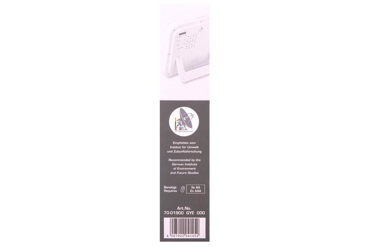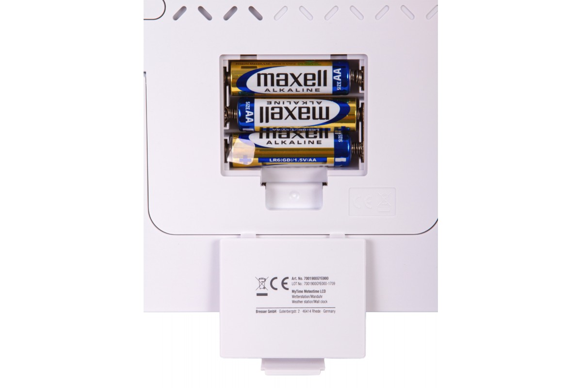 - Источник питаниячасы-метеостанция: батарейки типа АА – 3 шт. (нет в комплекте); наружный датчик: батарейки типа ААА – 2 шт. (нет в комплекте)
