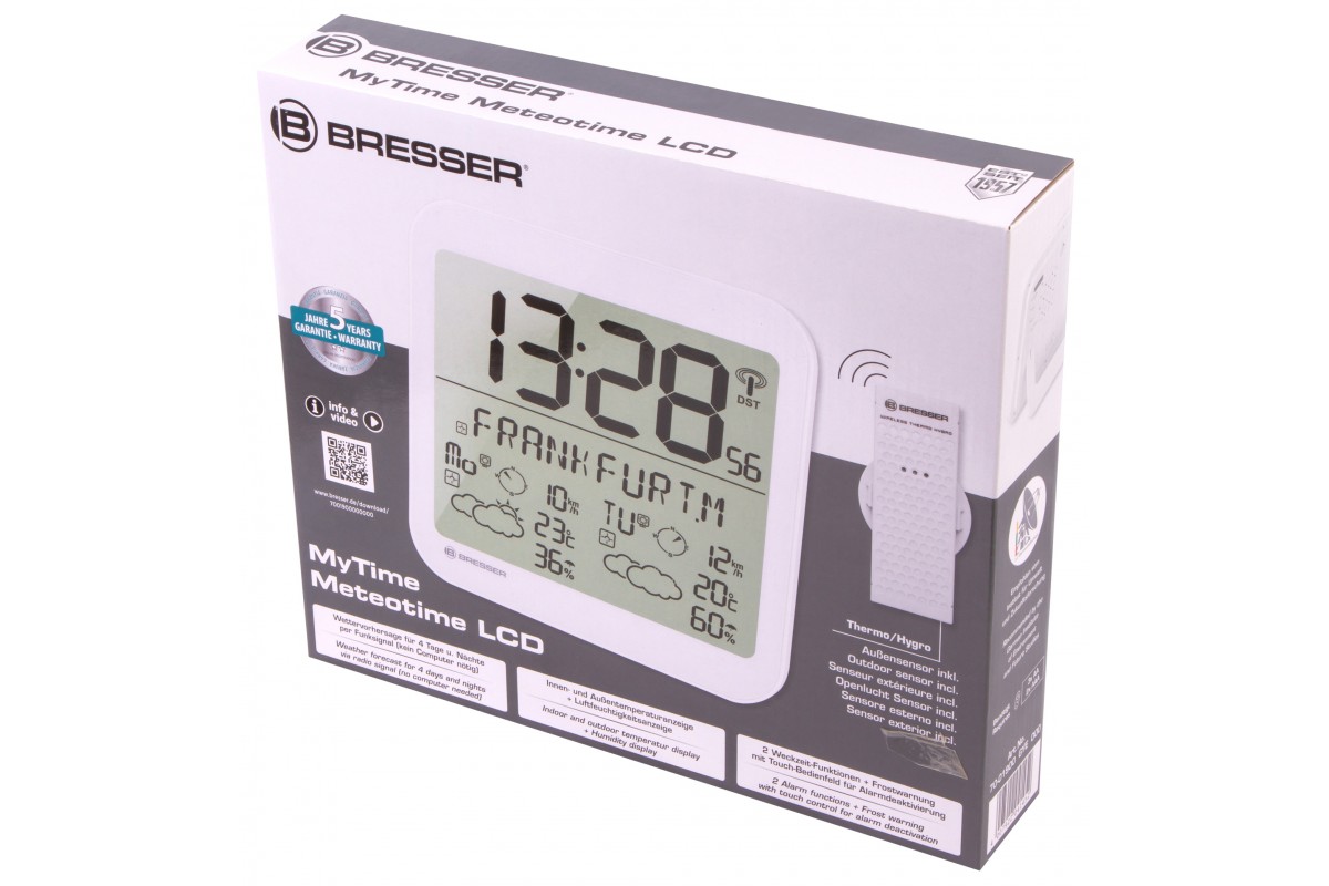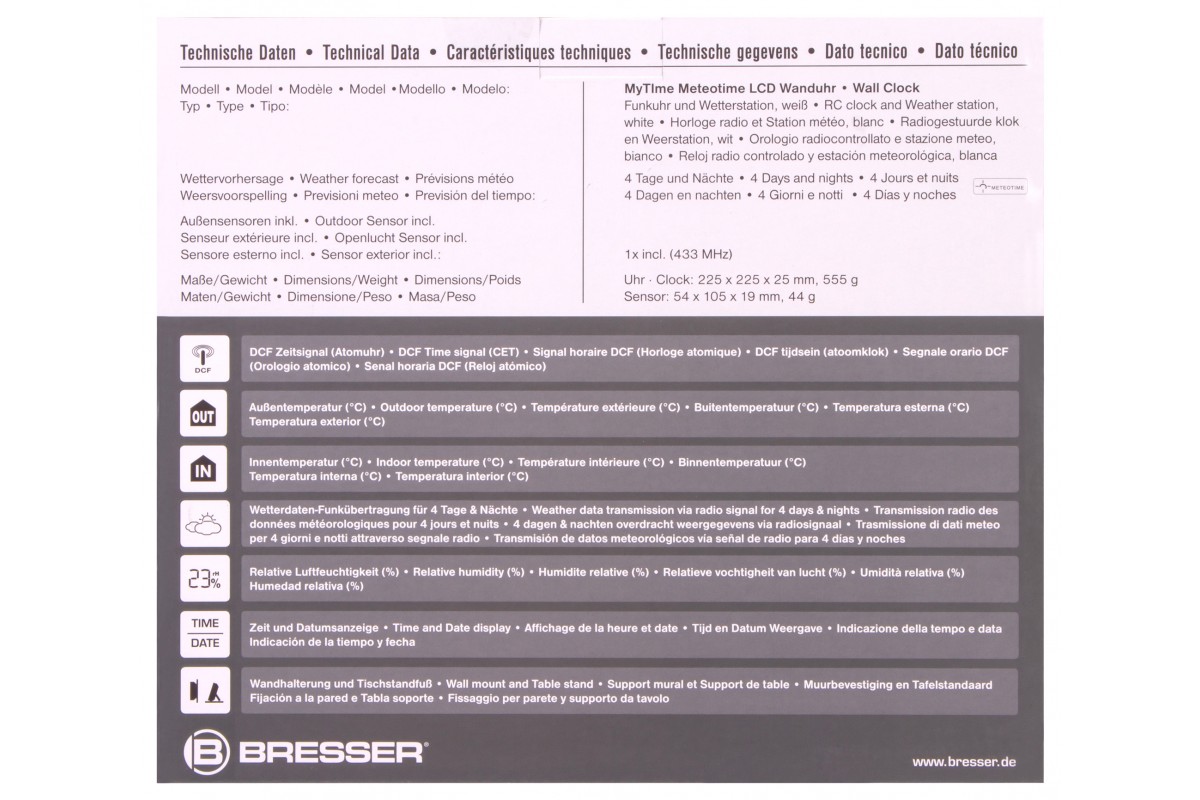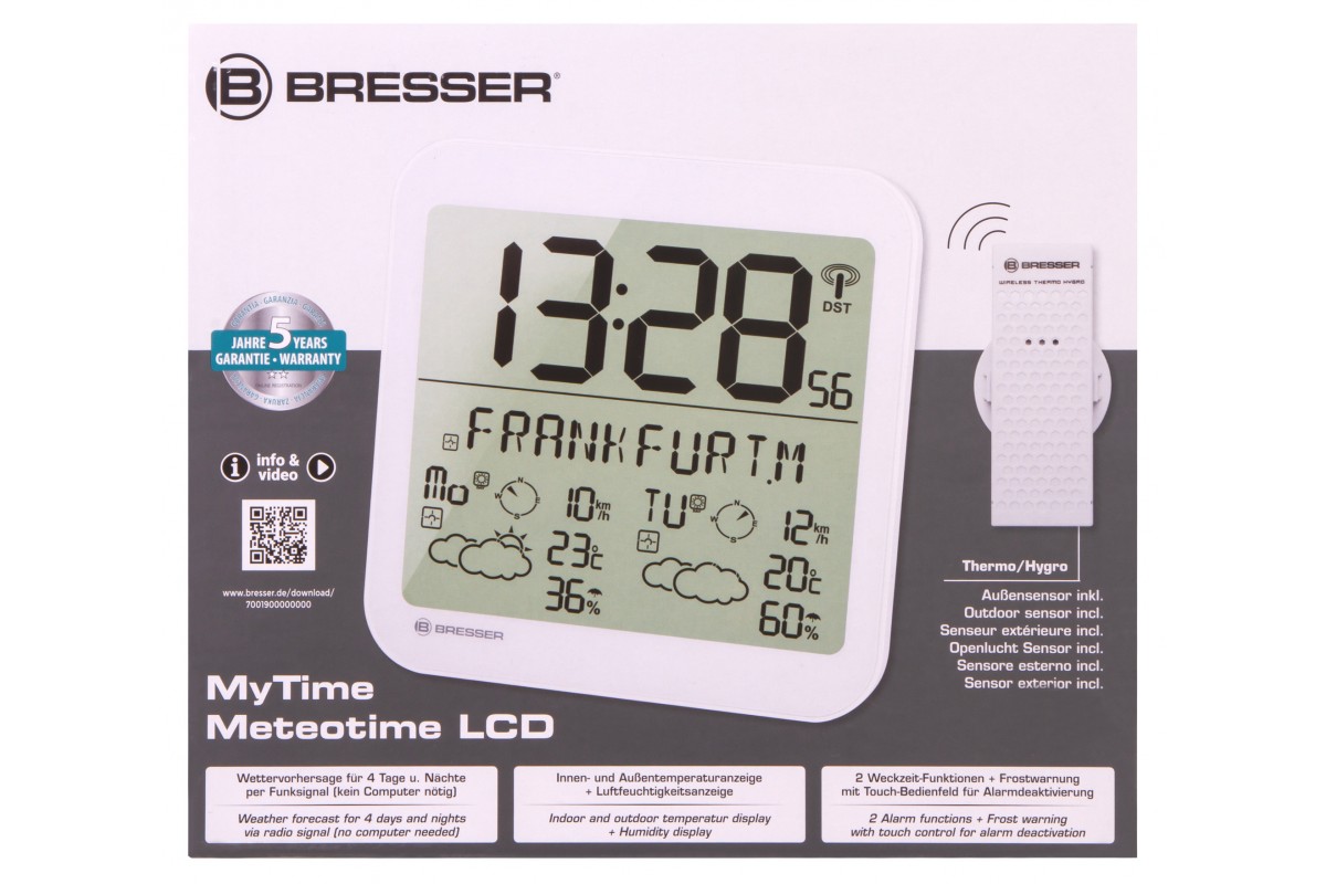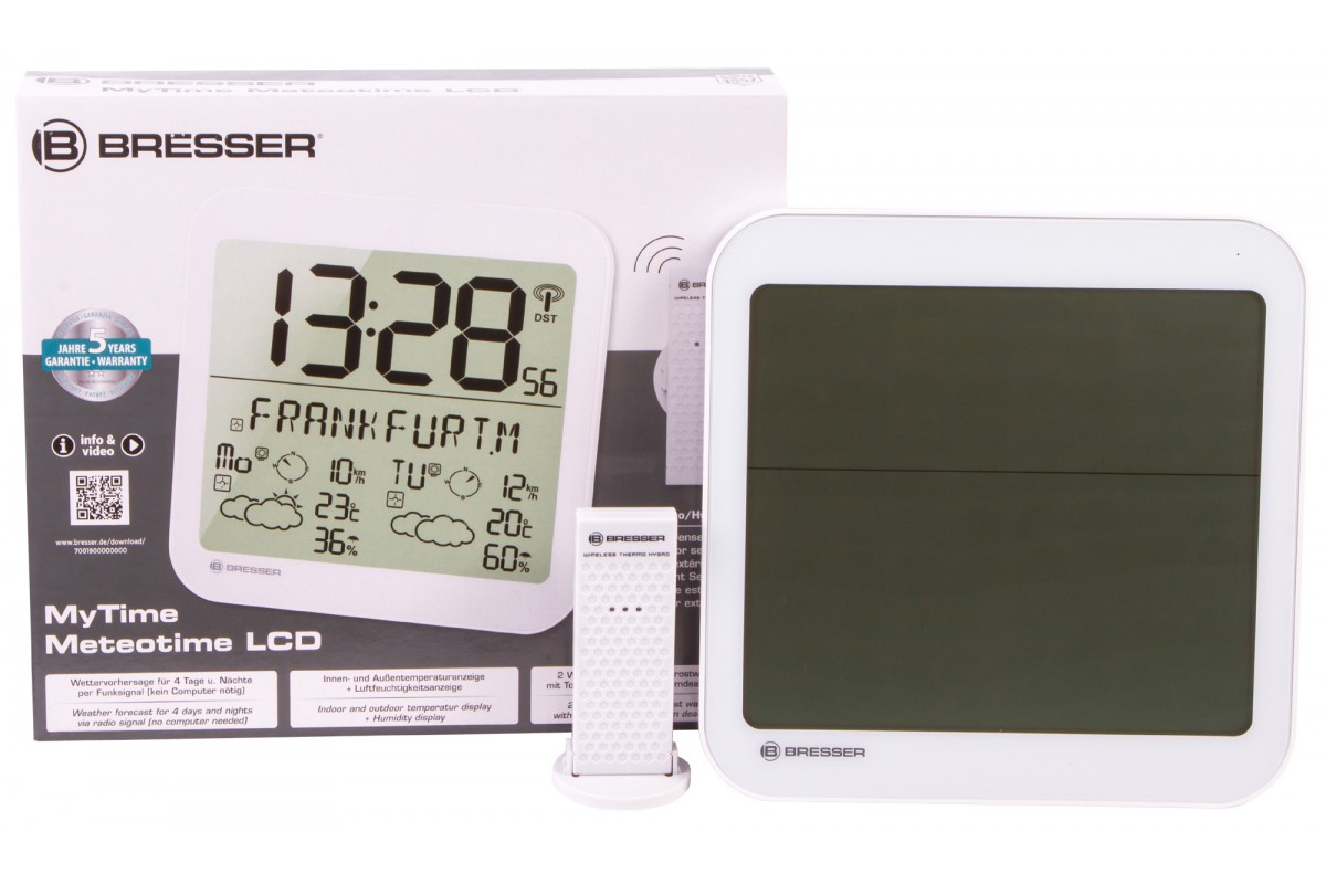 Настенные часы Bresser MyTime Meteotime LCD – это также и мини-метеостанция. Она измеряет температуру и влажность воздуха в квартире и на улице и загружает из интернета прогноз погоды на ближайшие дни. Также это будильник и украшение интерьера. Благодаря лаконичному дизайну корпуса часы прекрасно дополнят комнату, оформленную в современном стиле.