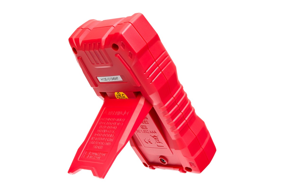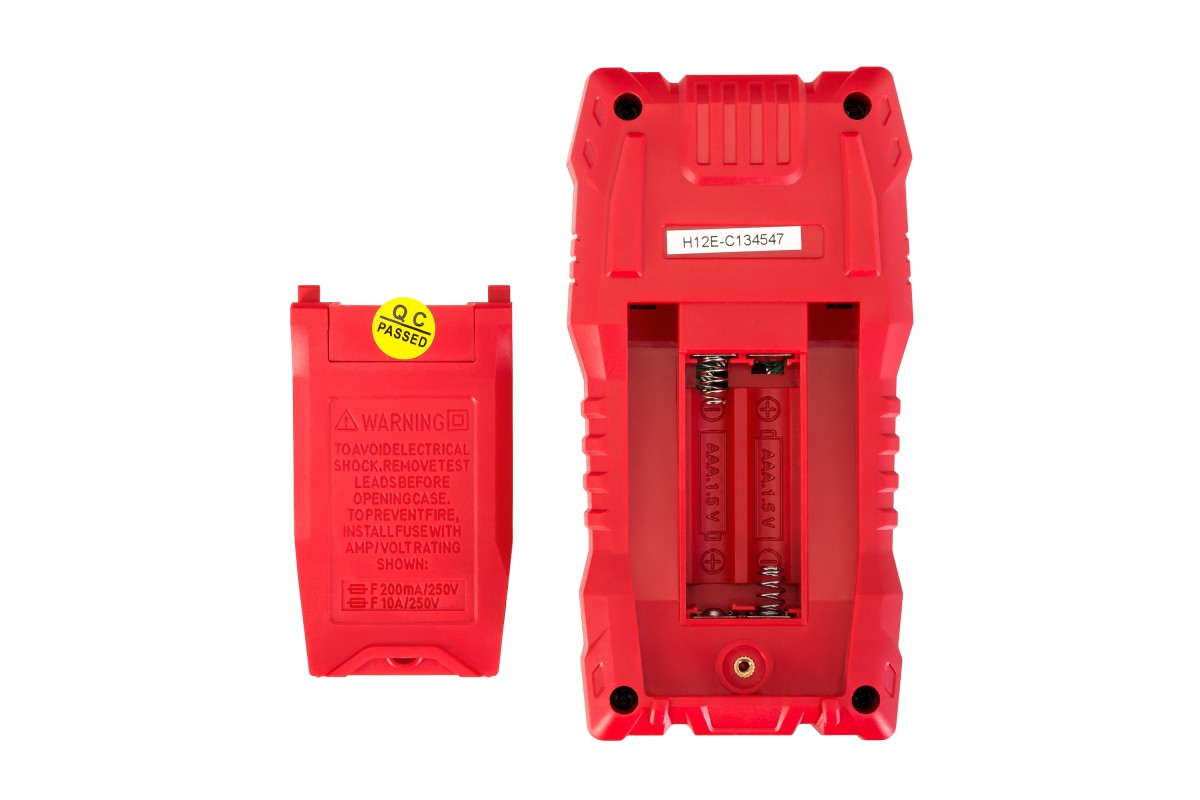 Мультиметр оснащен монохромным дисплеем для вывода результатов и имеет несколько полезных функций. В режиме прозвонки можно определить, есть ли обрыв кабеля. В режиме Hold последний результат измерения фиксируется на дисплее, чтобы его можно было посмотреть позже. Еще одна дополнительная опция – определение пробоев и обрывов диодов. Устройство питается от 2 батареек типа AAA, которые не входят в комплект поставки. Уровень заряда отображается на дисплее. При бездействии мультиметр автоматически отключается для экономии заряда.