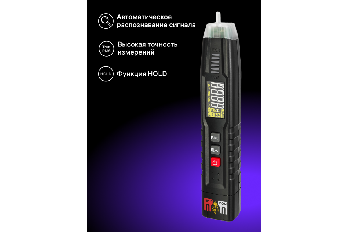 • Автоматическое определение входящего сигнала (функция Smart) при прозвонке кабеля и измерении напряжения