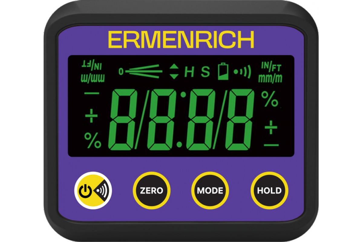 Компактный цифровой уровень Ermenrich Verk LQ40 – это удобный и точный инструмент для измерения уровня наклона, который пригодится на строительной площадке, при монтажных и отделочных работах или в производственном цеху. Прибор оснащен контрастным ЖК-дисплеем, на который выводятся результаты измерений в выбранных пользователем единицах. Для удобства пользователя уровень имеет функцию удержания показаний и установки на ноль.