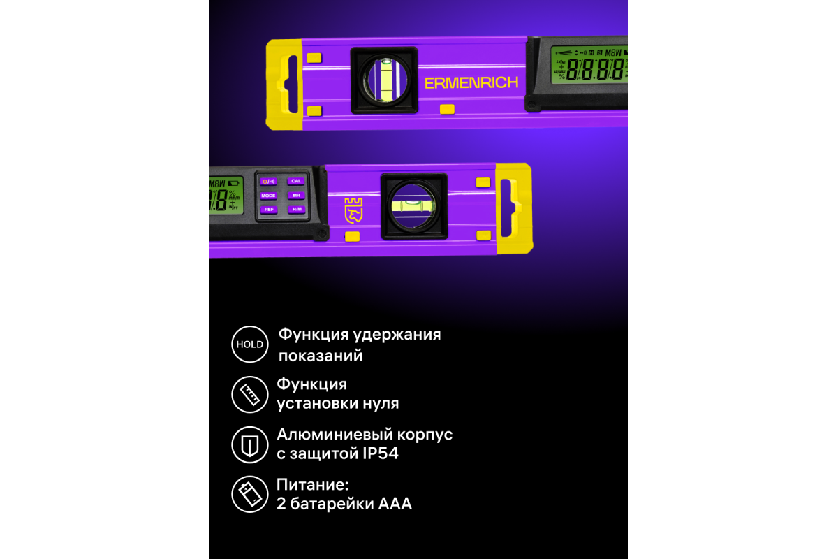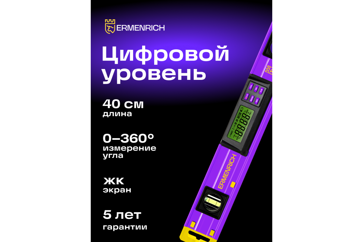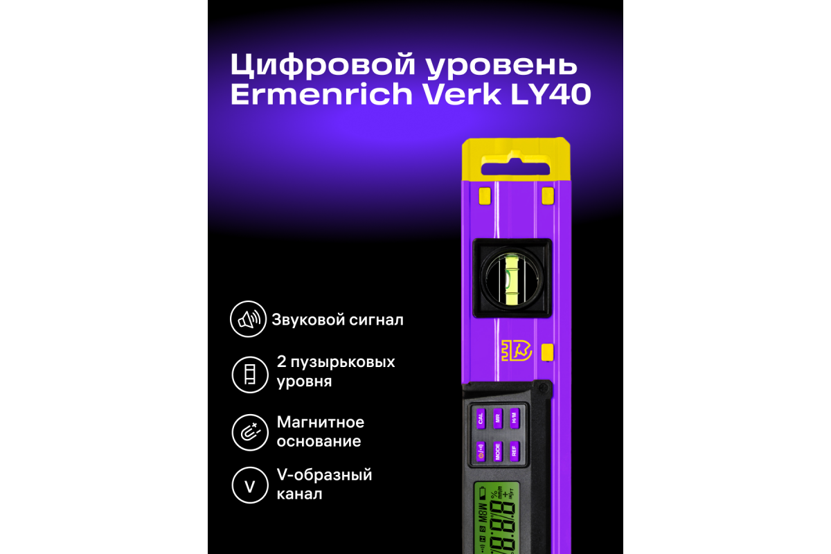 Ermenrich Verk LY40 – это компактный цифровой уровень с ЖК-экраном, дополнительно оборудованный ватерпасом. Такой прибор позволит быстро и точно измерить наклон объекта в четырех направлениях в диапазоне 0–360°. Результаты измерений выводятся на экран в единицах, выбранных пользователем. Такой прибор будет полезен как в профессиональной деятельности, связанной со строительством, монтажом или наладкой производственного оборудования, так и при ремонте квартиры или загородного дома.