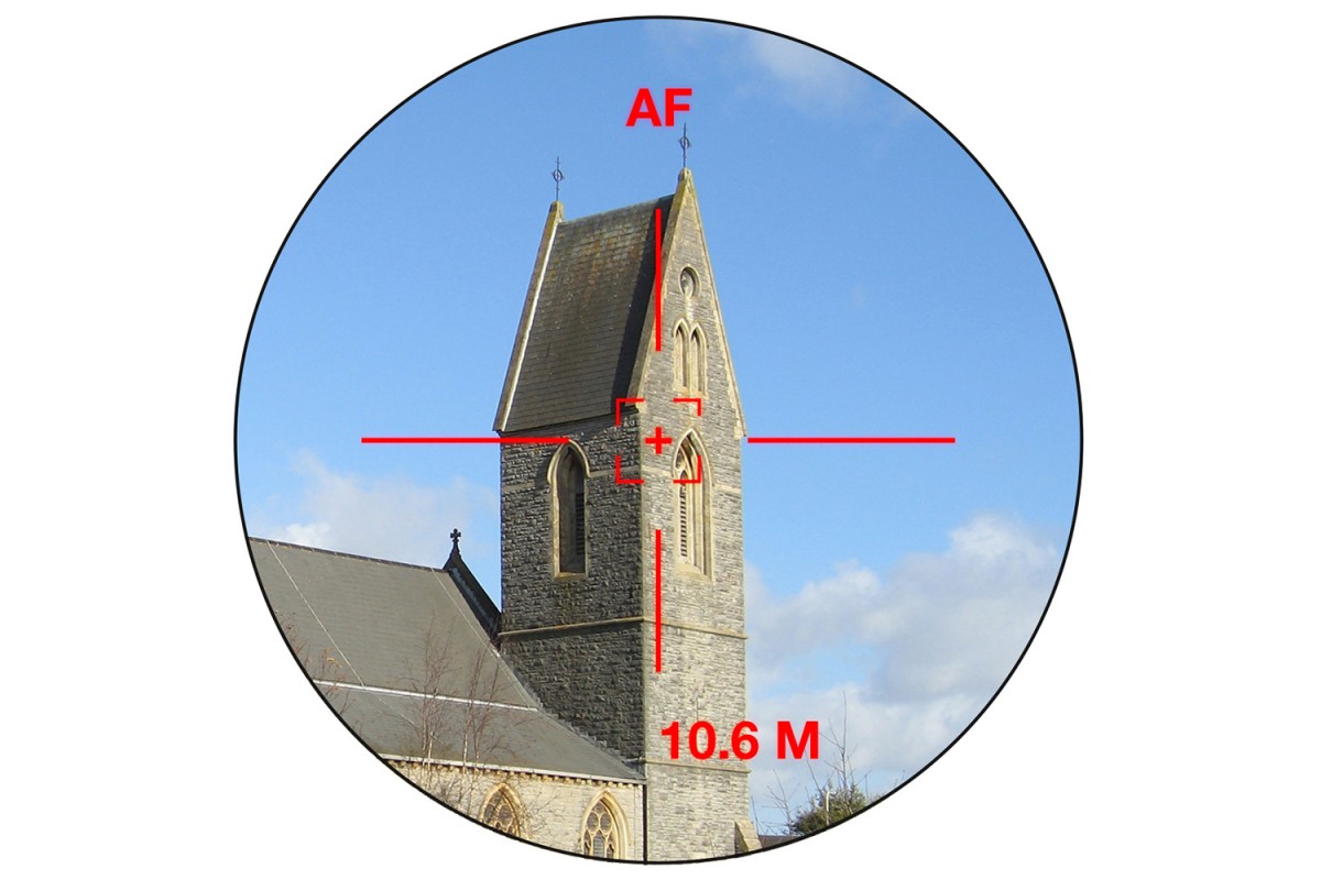 Оптика дает фиксированное 6-кратное увеличение, а используемый лазер полностью безопасен для зрения (1 класс безопасности). Все измерения отображаются на OLED-экране, который расположен в поле зрения прибора. Там же находится подсвечиваемая сетка, которая позволяет проводить измерения даже в полной темноте. Яркость сетки настраивается – доступно 32 уровня.