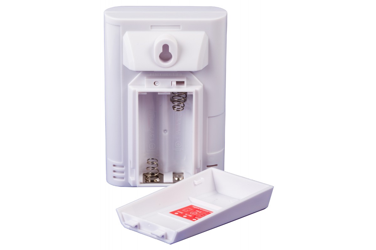 Датчик передает данные по радиоканалу, также показания выводятся на встроенный экран. Для работы требуются стандартные батарейки. Возможен настольный или настенный монтаж.