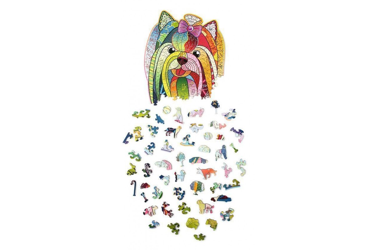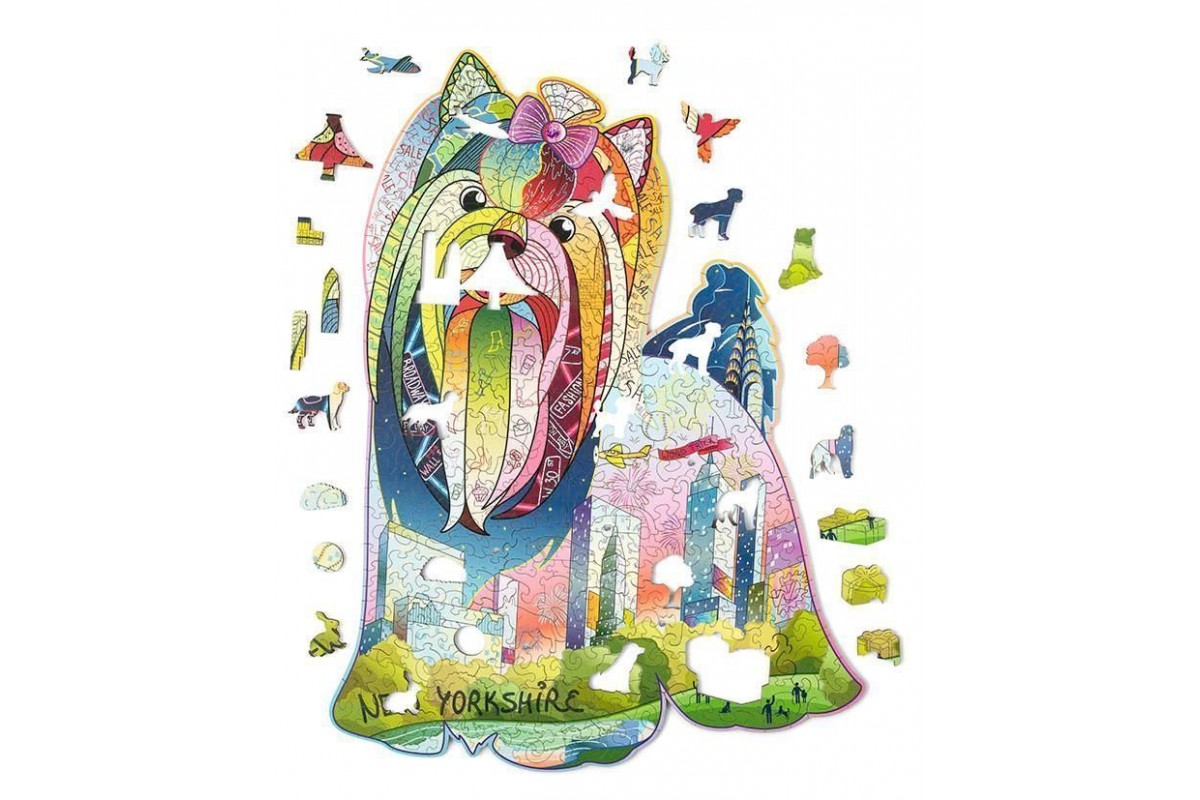 Новый пазл «Нью-Йоркшир» – модель с уникальными элементами и необычной историей, линейки пазлов Grand dogs от компании Wood Trick. Она непременно понравится взрослым и маленьким любителям головоломок. Набор состоит из 286 уникальных деревянных деталей, среди которых 45 разных фигурок. Все они имеют яркий оттенок, а также украшены двумя большими и пятью маленькими кристаллами Сваровски.