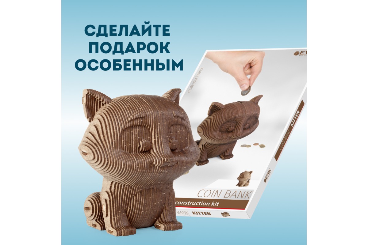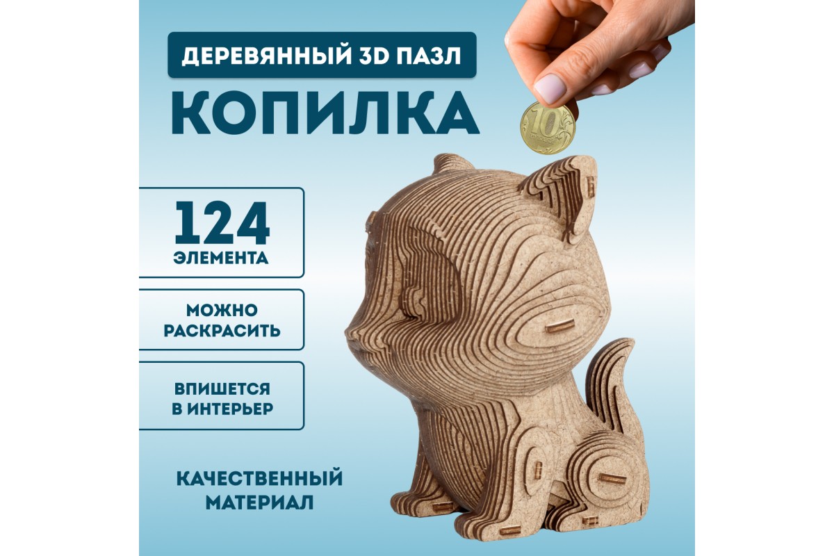 Деревянный 3D пазл копилка EWA Кошечка — это интерьерный 3D конструктор, изготовленный из экологичной древесины (хдф - ДВП высокой плотности). Это прекрасный подарок для любителей 3D конструкторов и моделирования, позволяет развить мелкую моторику рук, усидчивость и концентрацию внимания. 3d пазл из дерева понравится каждому, подойдет и для детей, и для взрослых.