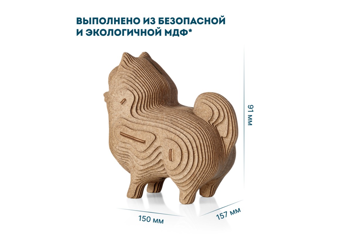 Детали пазла можно раскрасить любимыми красками. Статуэтка собаки, созданная своими руками, отлично дополнят интерьер и придаст ему уникальность и в дополнении послужит копилкой для монет. Конструктор-пазл для творчества прост в сборке, все детали вырезаны и пронумерованы, для создания объемной фигуры вам не понадобятся дополнительные инструменты.