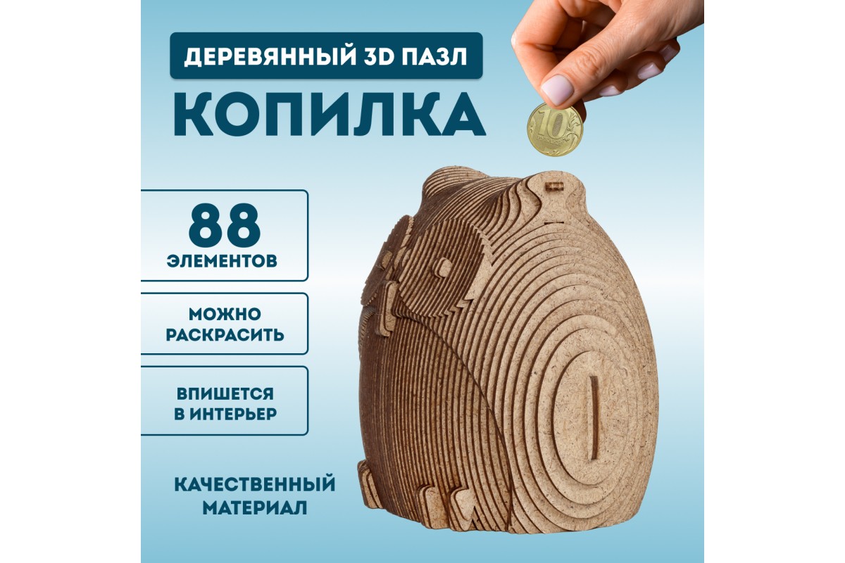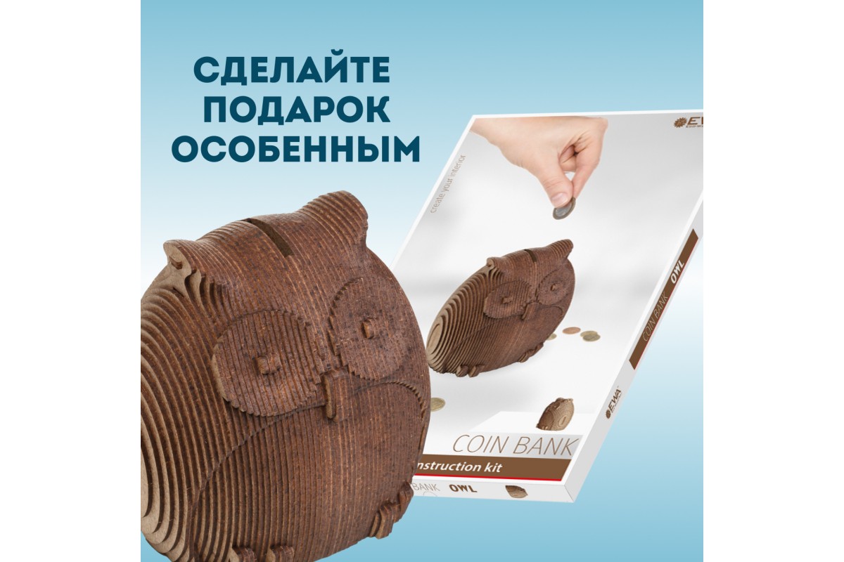 Деревянный 3D пазл копилка EWA Сова — это интерьерный 3D конструктор, изготовленный из экологичной древесины (хдф - ДВП высокой плотности). Это прекрасный подарок для любителей 3D конструкторов и моделирования, позволяет развить мелкую моторику рук, усидчивость и концентрацию внимания. 3d пазл из дерева понравится каждому, подойдет и для детей, и для взрослых.